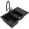 Mexen Gaspar chiuvetă din granit cu 1,5 compartimente, cu scurgător și baterie de bucătărie Duo, negru/auriu metalic