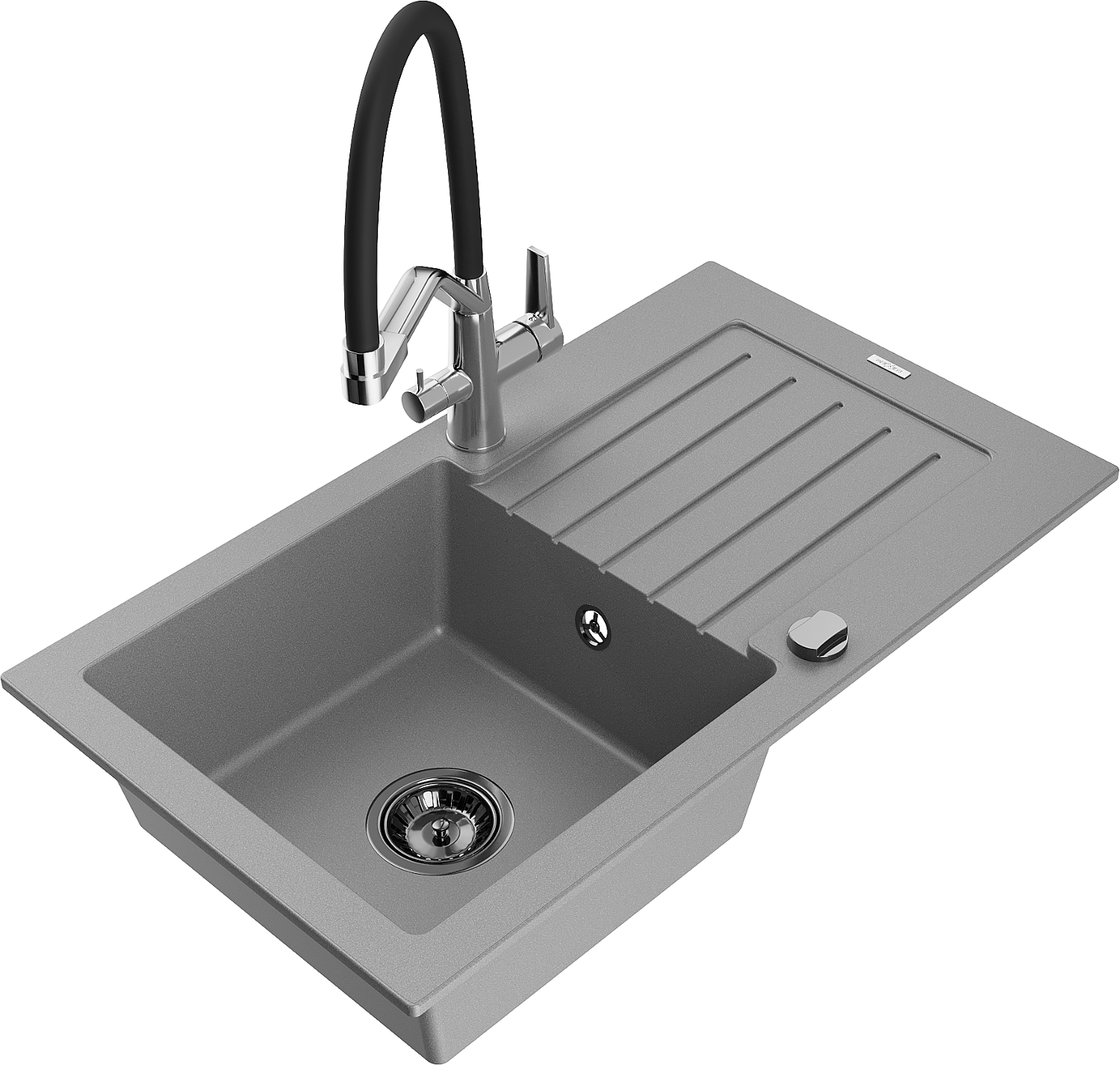 Mexen Pablo chiuvetă de bucătărie din granit cu 1 compartiment cu scurgător și baterie Duo, gri - 6510-71-671701-07-B