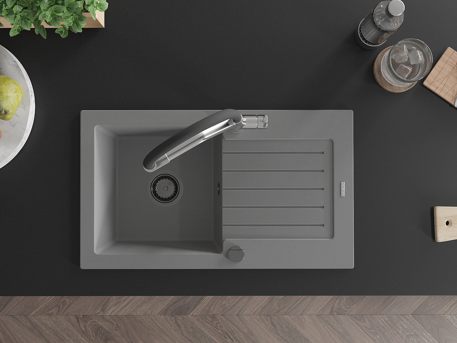 Chiuveta este confecționată din granit de înaltă calitate. Este un complement elegant și, mai ales, practic pentru fiecare bucătărie, indiferent de stilul său. Durabilitatea de înaltă calitate și granit asigură mulți ani de utilizare.