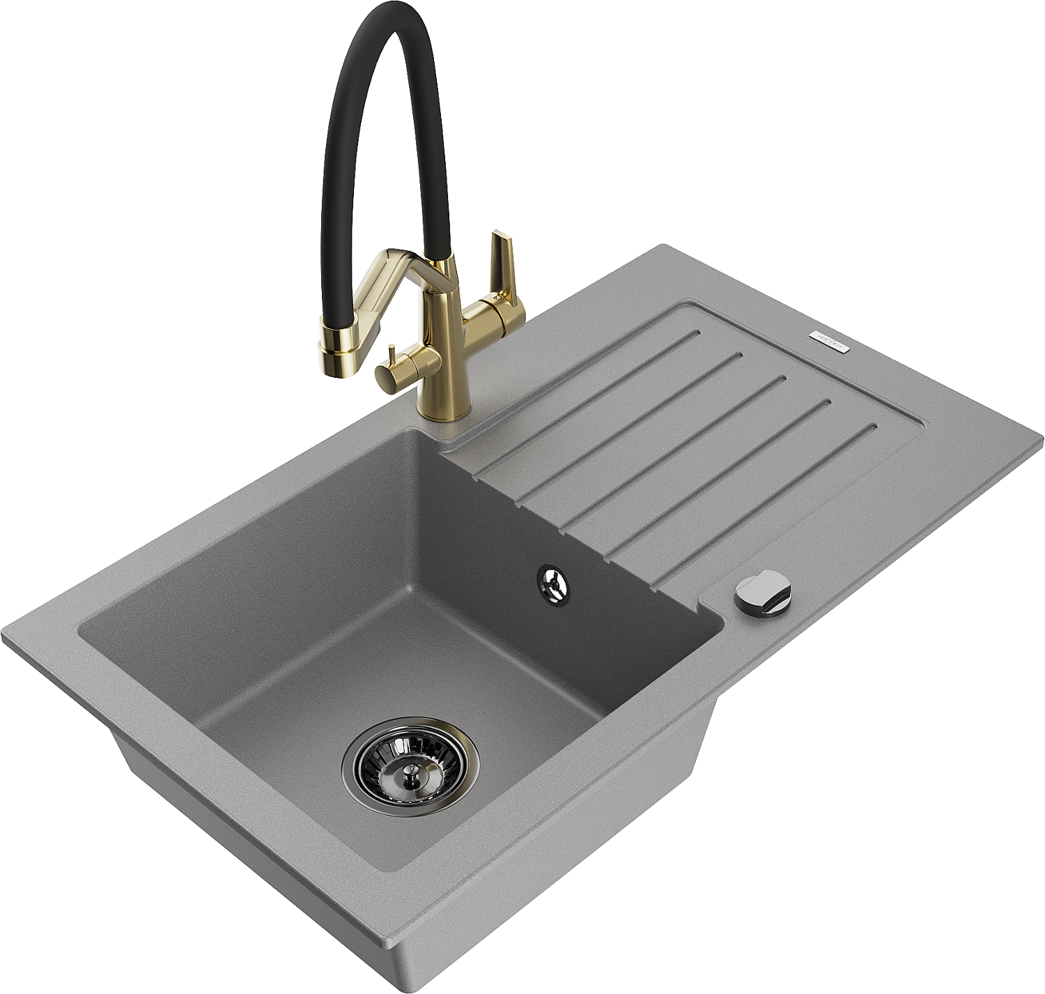 Mexen Pablo chiuvetă de granit cu o cuvă și scurgător și baterie de bucătărie Duo, gri - 6510-71-671701-57-B