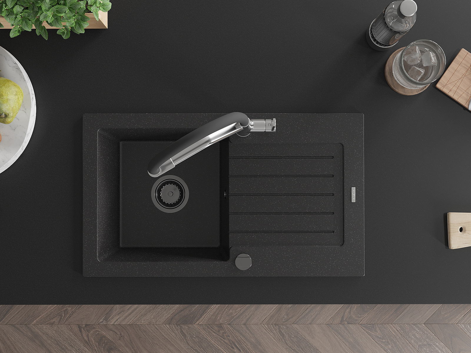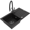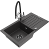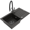 Mexen Pablo chiuvetă de bucătărie din granit cu 1 compartiment, cu scurgător și baterie de bucătărie Duo, negru/argintiu