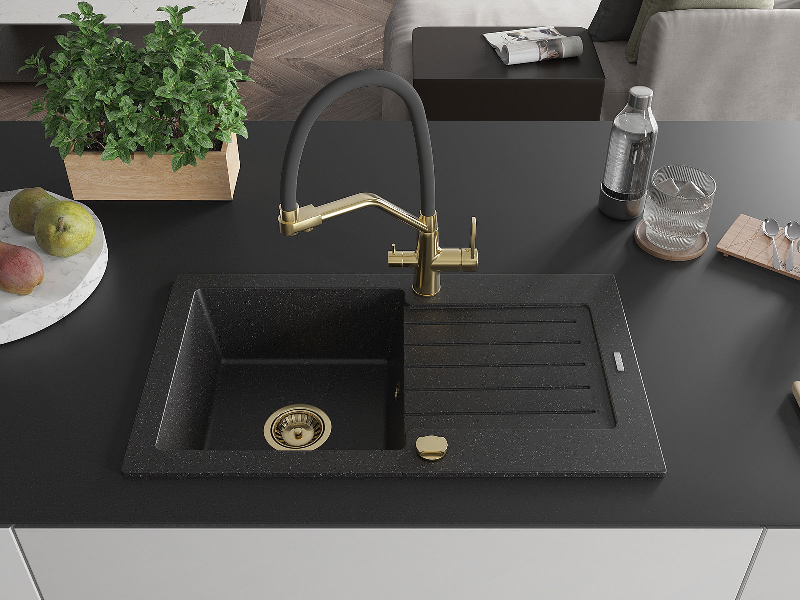 Chiuveta a fost realizată din granit de înaltă calitate. Reprezintă un complement elegant și, mai presus de toate, practic pentru orice bucătărie, indiferent de stilul acesteia. Calitatea înaltă și durabilitatea granitului asigură o utilizare de lungă durată.