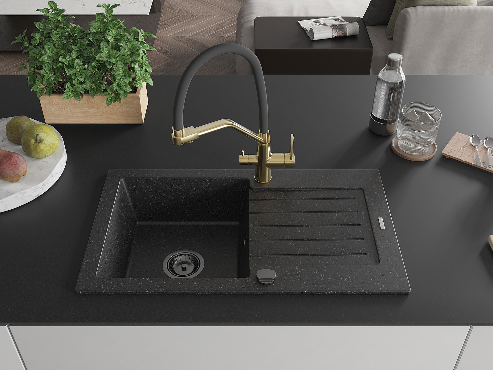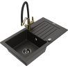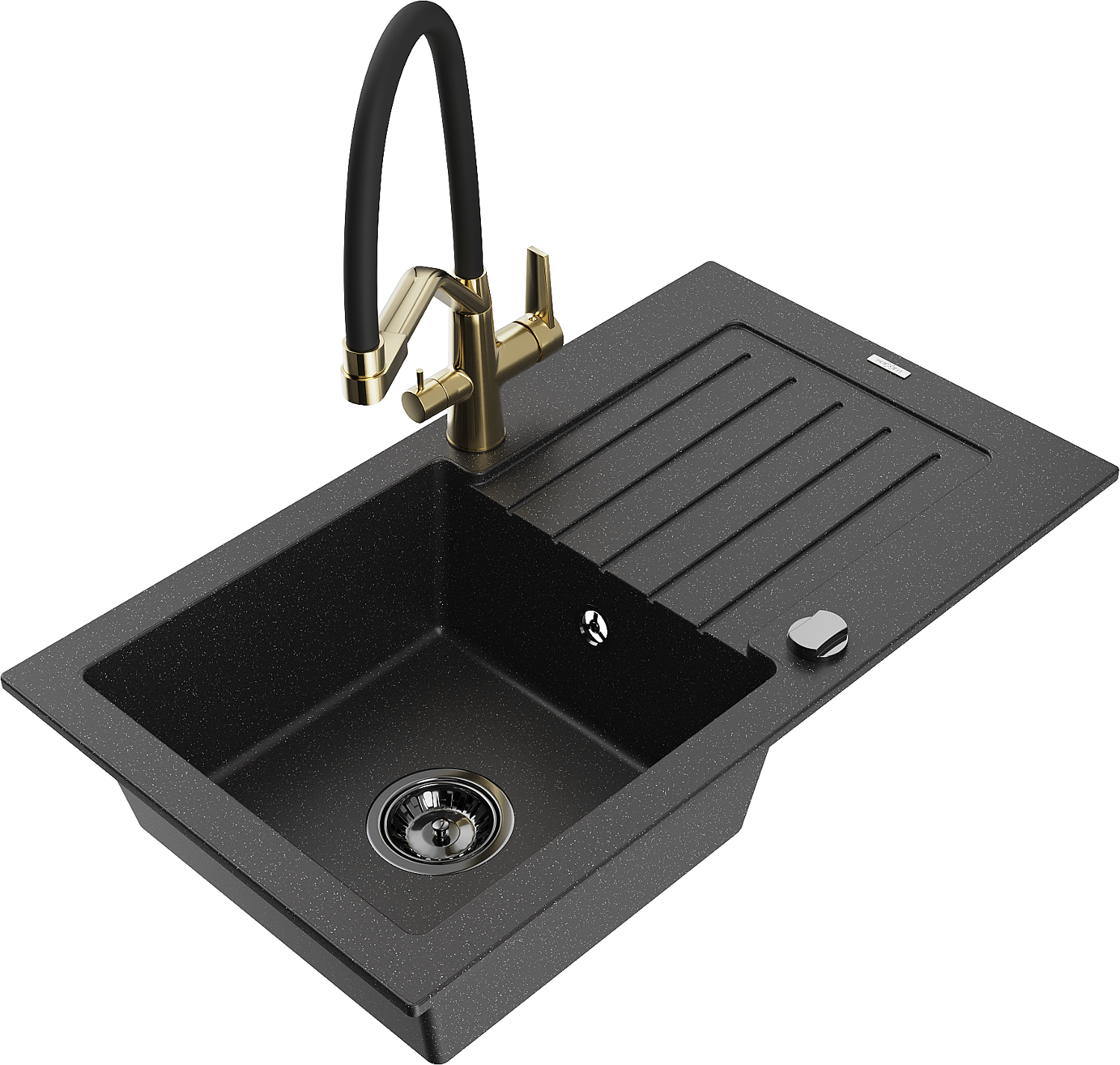 Mexen Pablo chiuvetă de granit cu 1 cuvă cu scurgător și baterie bucătărie Duo, negru/argintiu metalizat