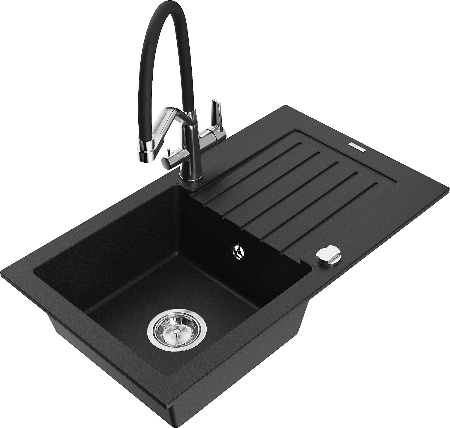 Mexen Pablo chiuvetă granitică cu 1 compartiment cu drenaj și baterie de bucătărie Duo, negru - 6510-77-671701-07