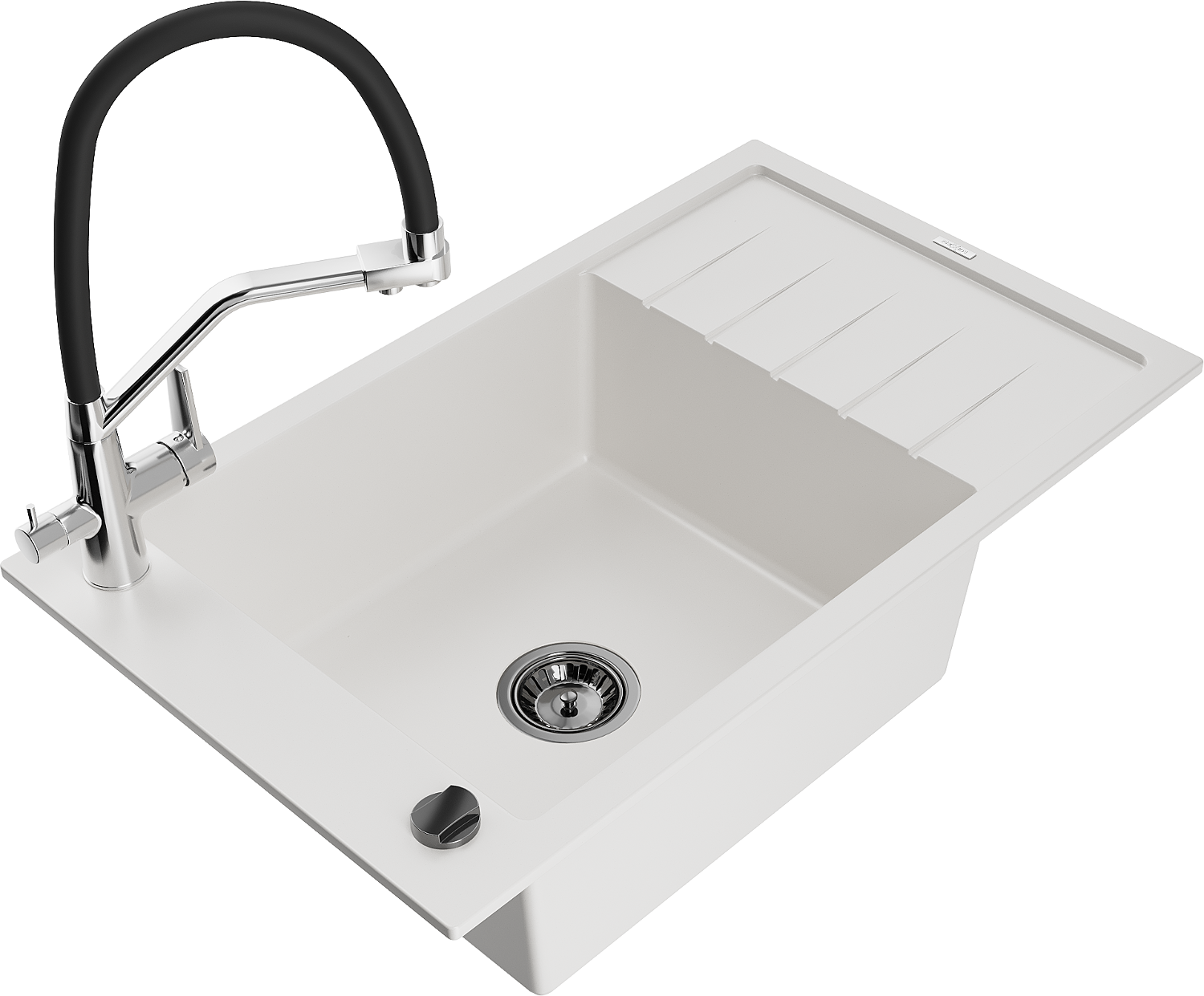 Suprafața chiuvetei este rezistentă la pete și decolorarea, datorită căreia este ușor de curățat și își păstrează culoarea mult timp. Estetică și practic completarea fiecărei bucătării.