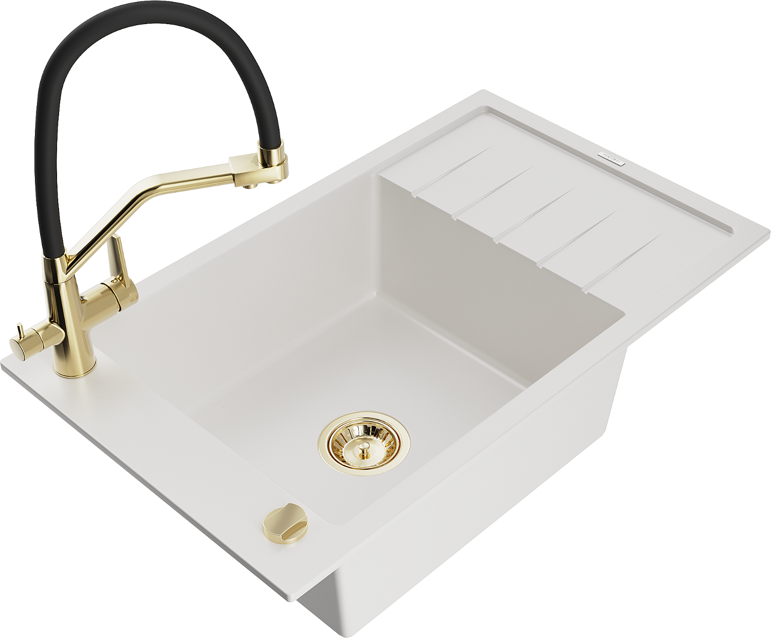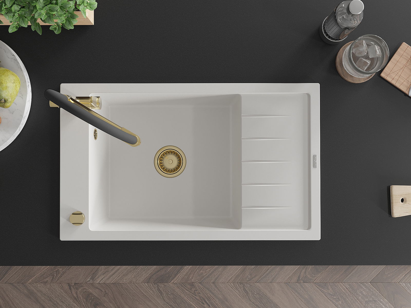 Mexen Elias chiuvetă de granit cu 1 compartiment, cu scurgător și baterie de bucătărie Duo, alb - 6511-20-671701-57-G