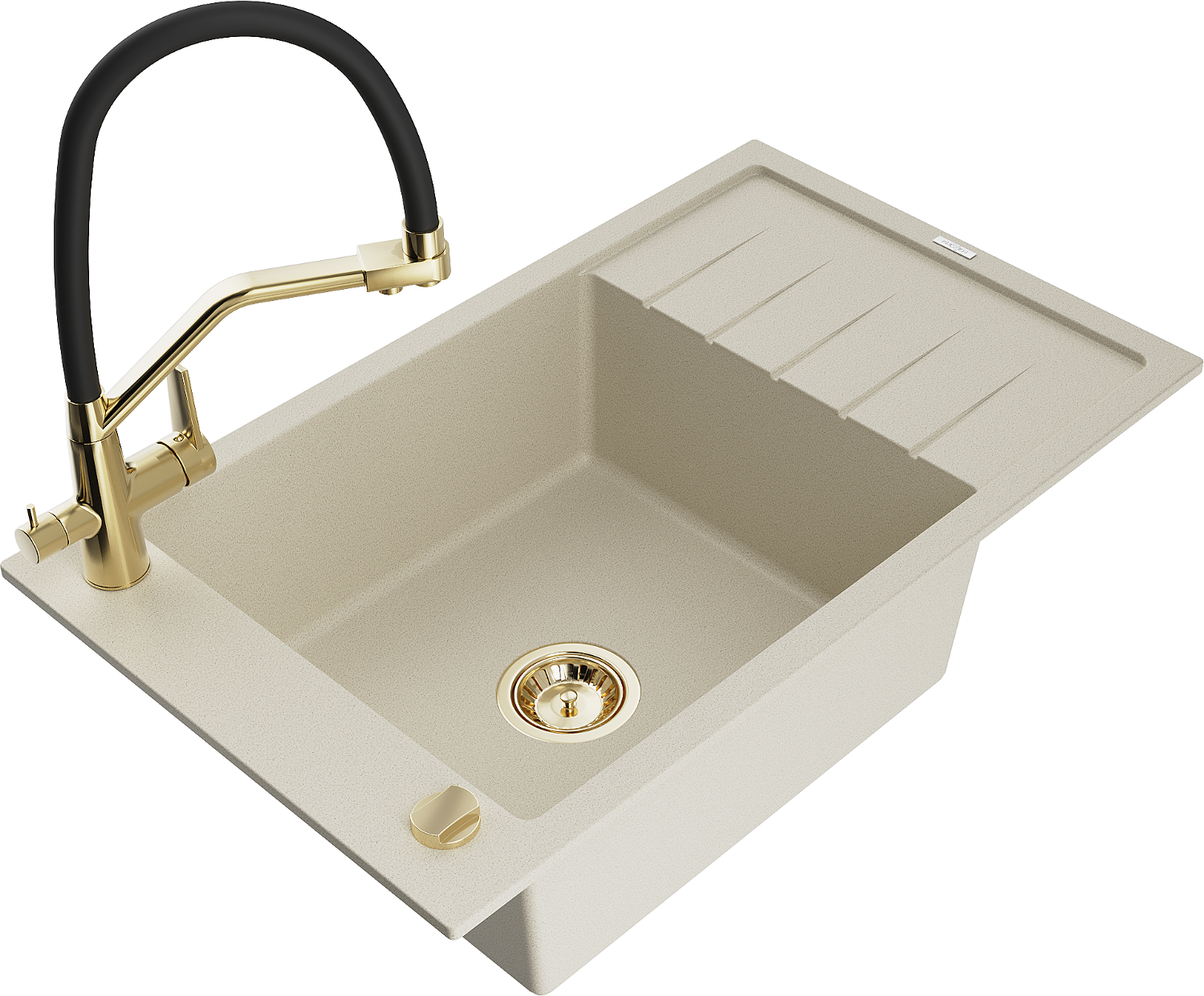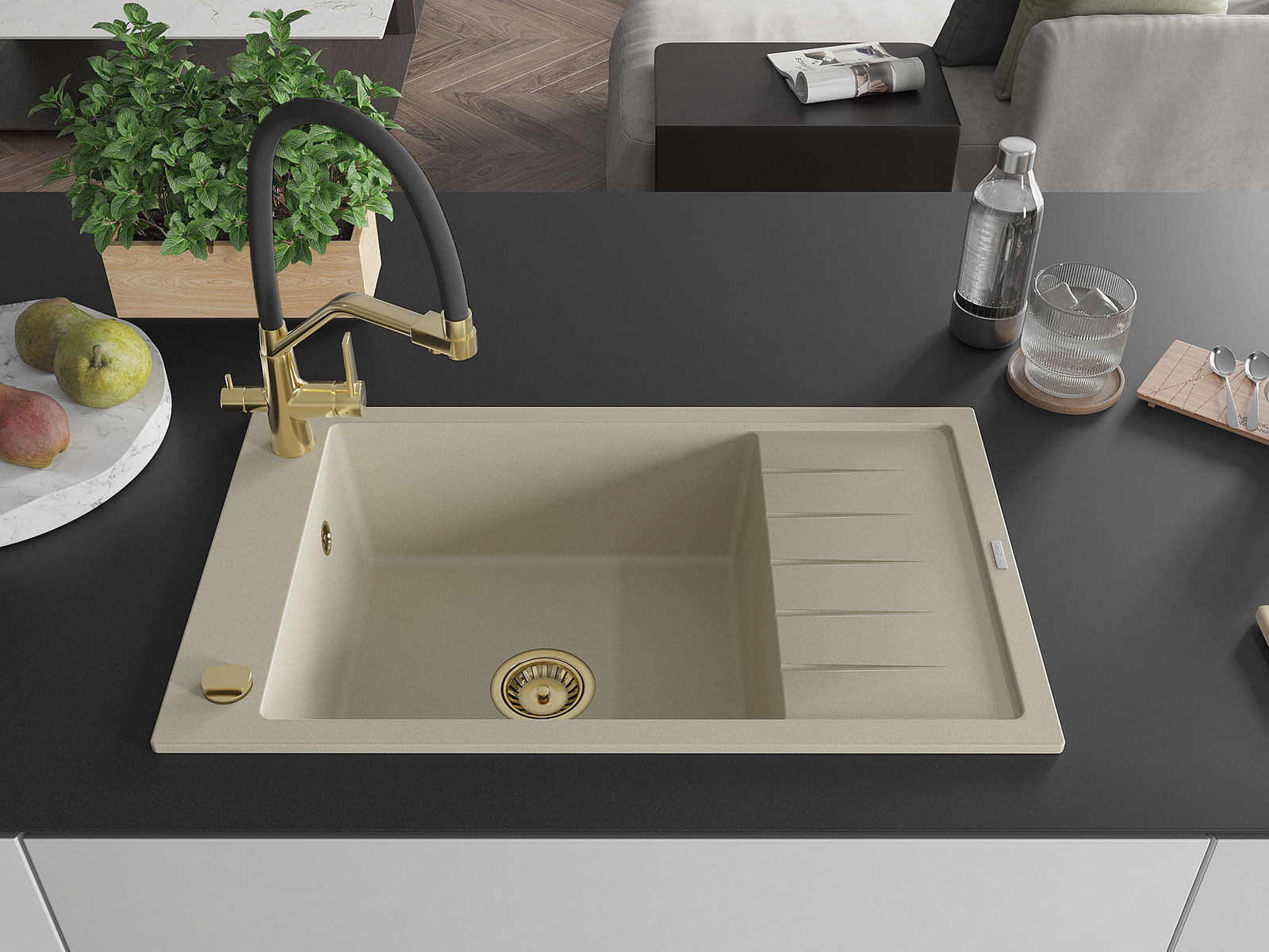 Mexen Elias chiuvetă de granit cu 1 compartiment, cu scurgător și baterie de bucătărie Duo, bej - 6511-69-671701-57-G