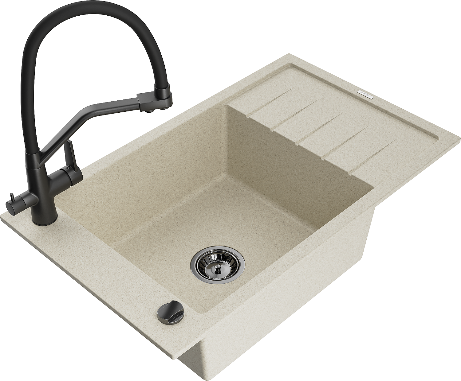 Mexen Elias chiuvetă din granit cu 1 compartiment și scurgător și baterie de bucătărie Duo, bej - 6511-69-671701-70-B