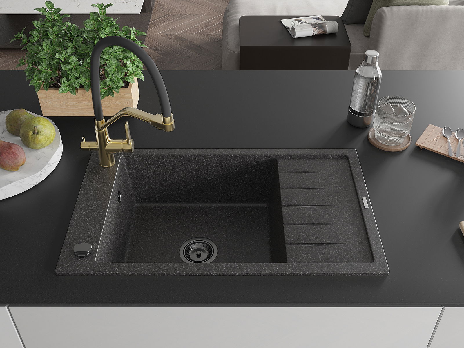 Chiuveta a fost realizată din granit de înaltă calitate. Reprezintă un complement elegant și, mai presus de toate, practic pentru orice bucătărie, indiferent de stilul său. Calitatea înaltă și durabilitatea granitului asigură o utilizare de lungă durată.