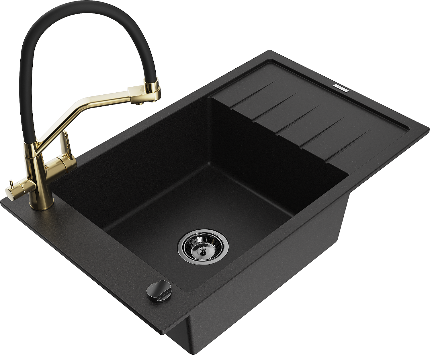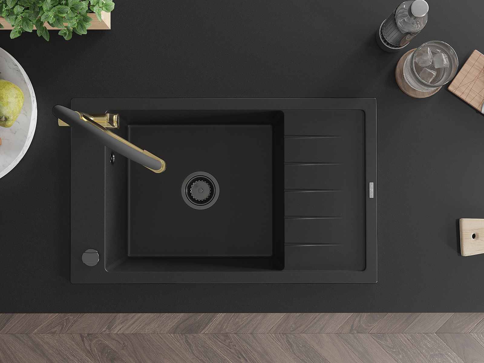 Mexen Elias chiuvetă de granit cu 1 compartiment, cu scurgător și baterie de bucătărie Duo, negru - 6511-77-671701-57-B