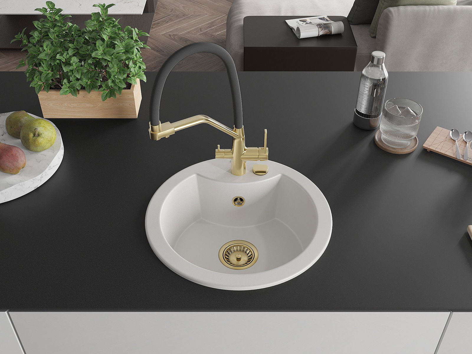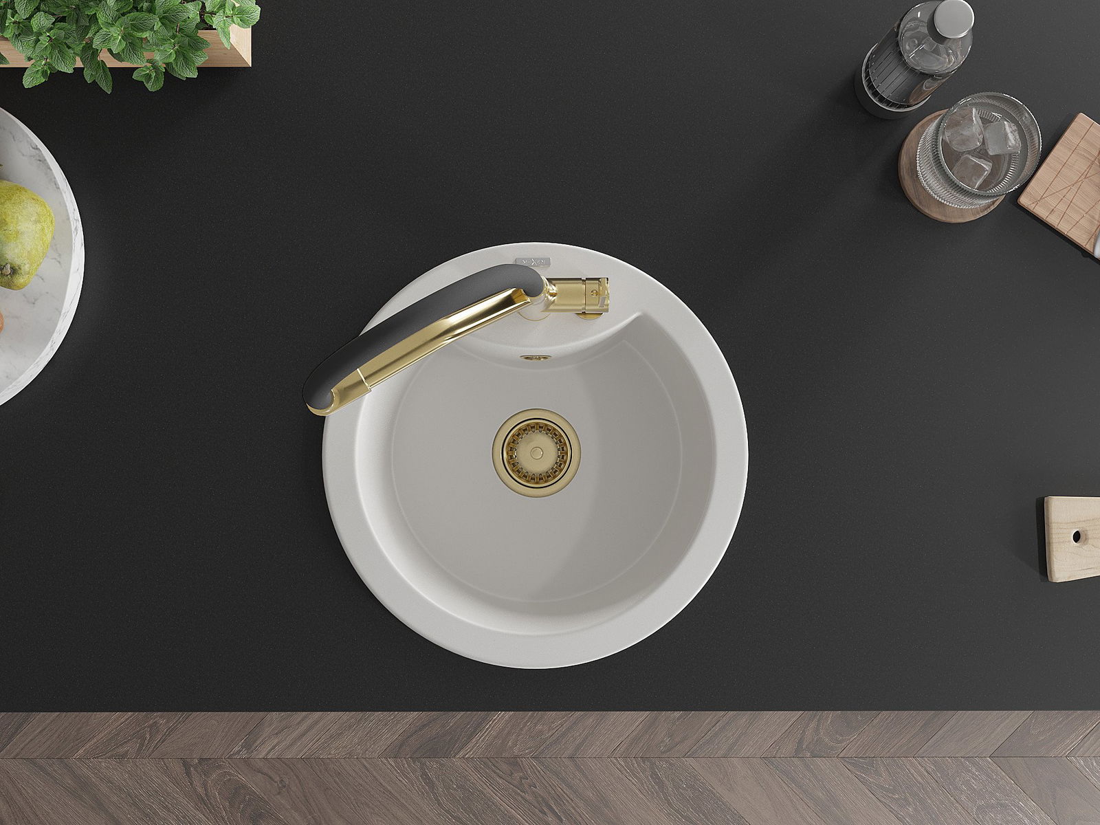 Suprafața chiuvetei este rezistentă la pete și decolorarea, datorită căreia este ușor de curățat și își păstrează culoarea mult timp. Estetică și practic completarea fiecărei bucătării.