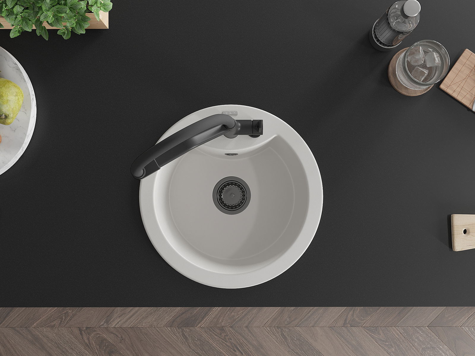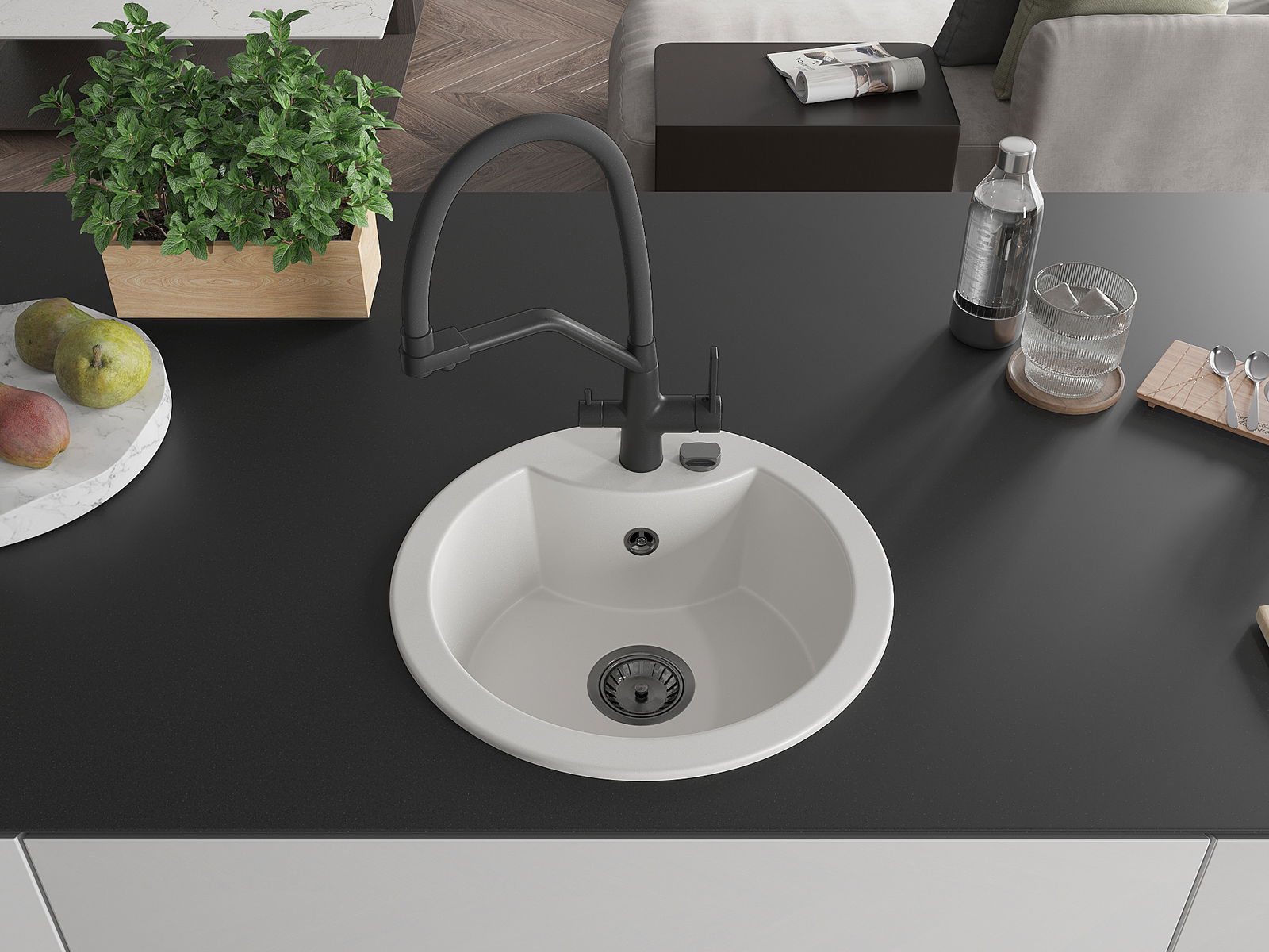 Suprafața chiuvetei este rezistentă la pete și decolorarea, datorită căreia este ușor de curățat și își păstrează culoarea mult timp. Estetică și practic completarea fiecărei bucătării.