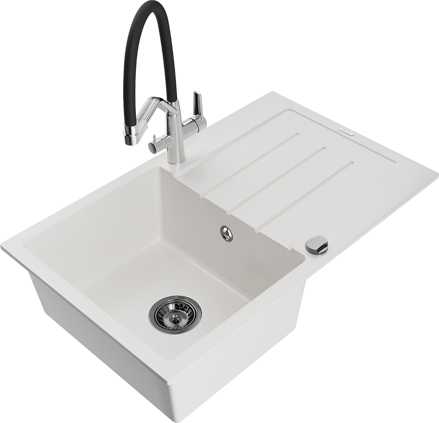 Mexen Bruno chiuvetă de granit cu 1 compartiment, cu scurgător și baterie de bucătărie Duo, alb - 6513-20-671701-07-B