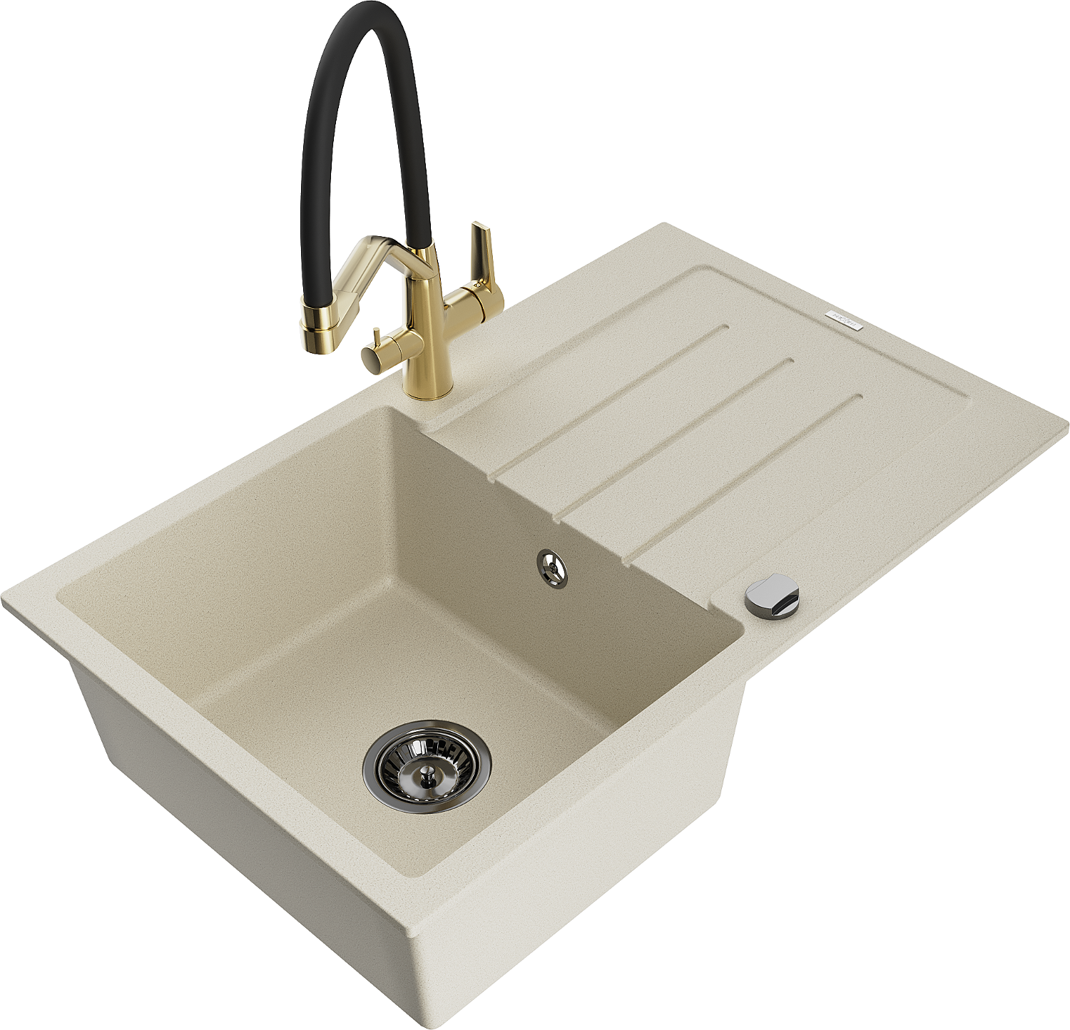 Mexen Bruno chiuvetă de granit cu o cuvă și scurgător și baterie de bucătărie Duo, bej - 6513-69-671701-57-B