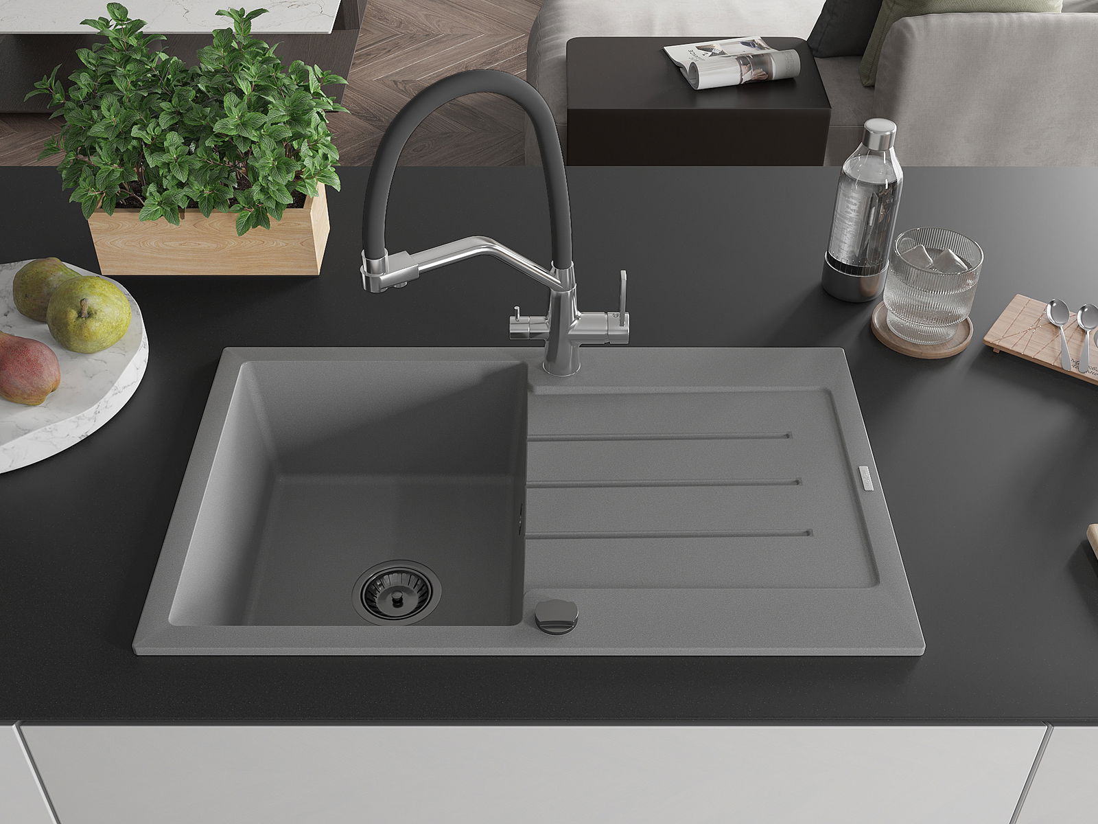 Suprafața chiuvetei este rezistentă la pete și decolorarea, datorită căreia este ușor de curățat și își păstrează culoarea mult timp. Estetică și practic completarea fiecărei bucătării.