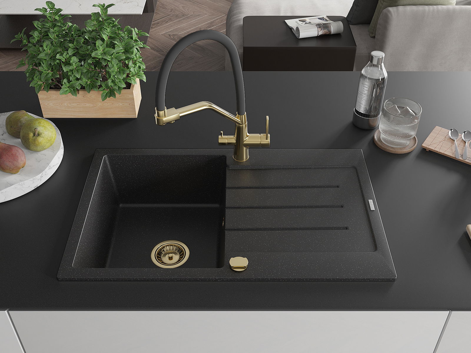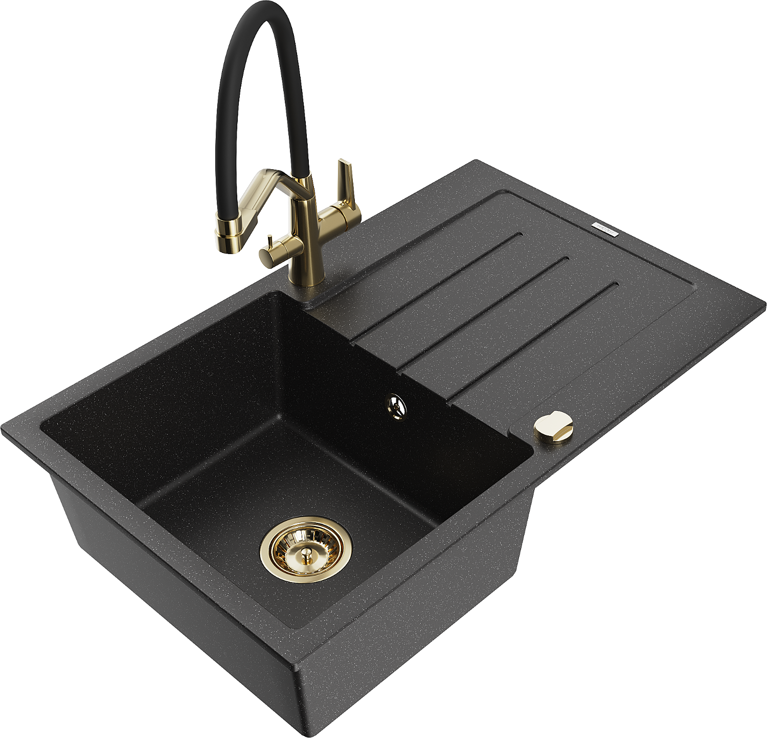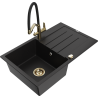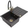 Mexen Bruno chiuvetă de granit cu 1 compartiment cu scurgător și baterie de bucătărie Duo, negru/metalizat argintiu