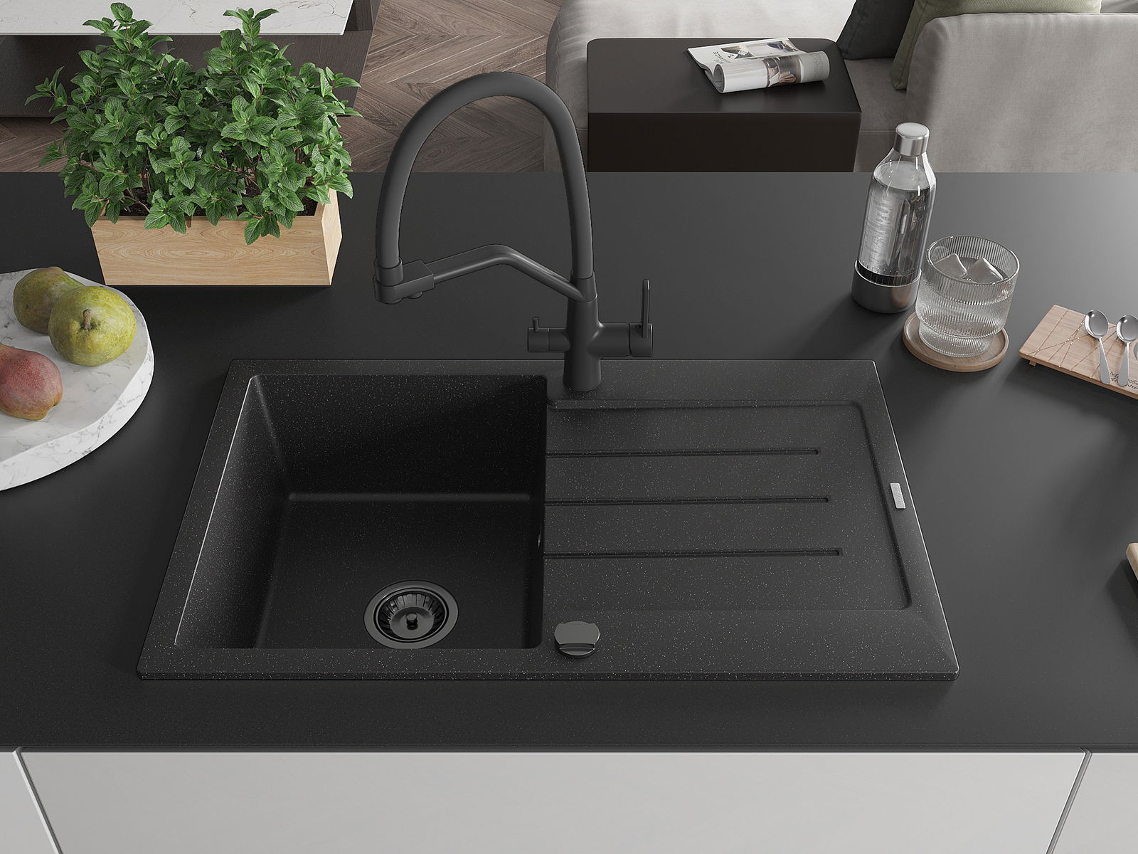 Chiuveta a fost realizată din granit de înaltă calitate. Reprezintă un complement elegant și, mai presus de toate, practic pentru orice bucătărie, indiferent de stilul acesteia. Calitatea înaltă și durabilitatea granitului asigură o utilizare de lungă durată.