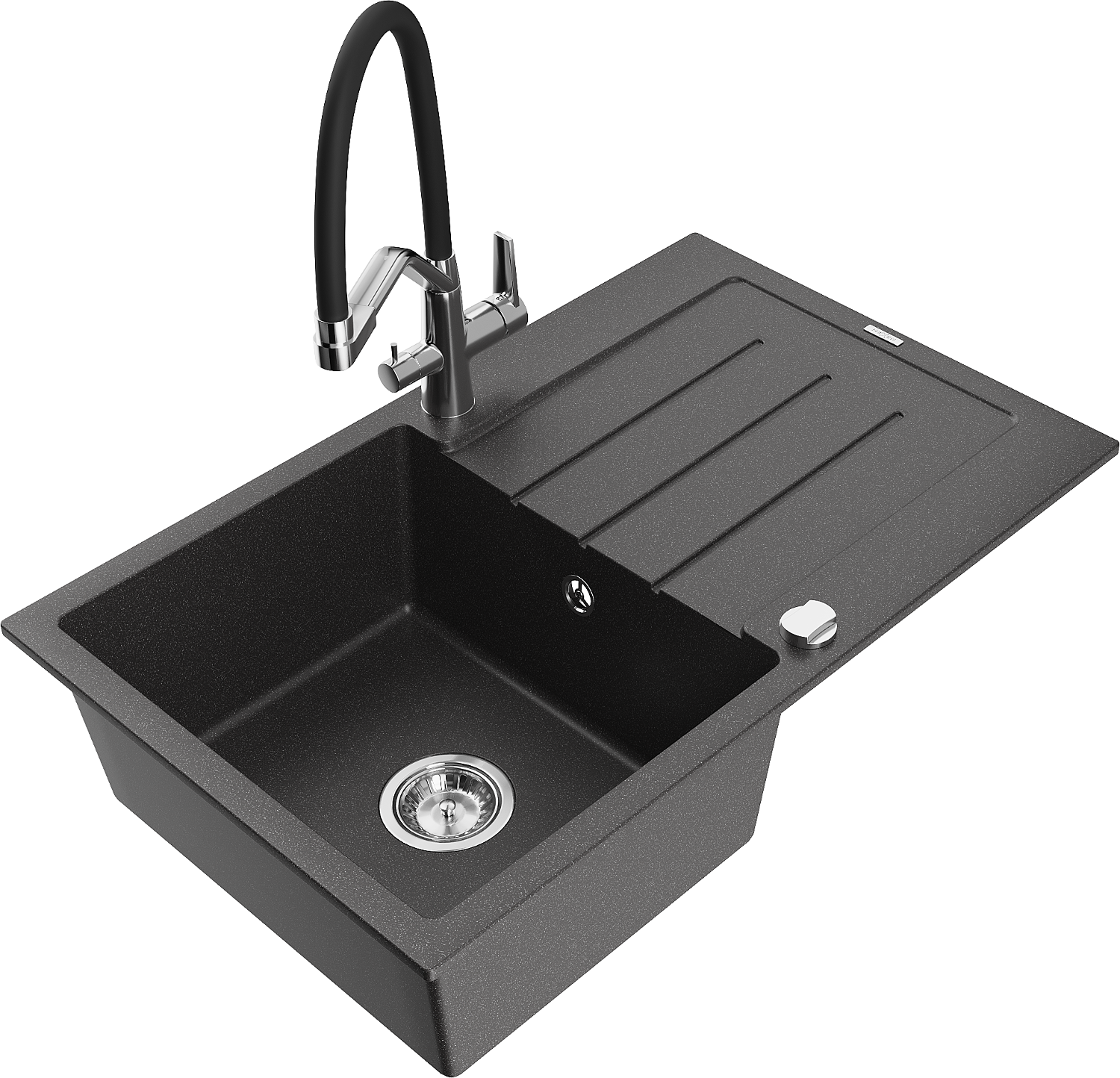 Mexen Bruno chiuvetă de granit cu 1 compartiment și scurgător și baterie de bucătărie Duo, negru pătat - 6513-76-671701-07