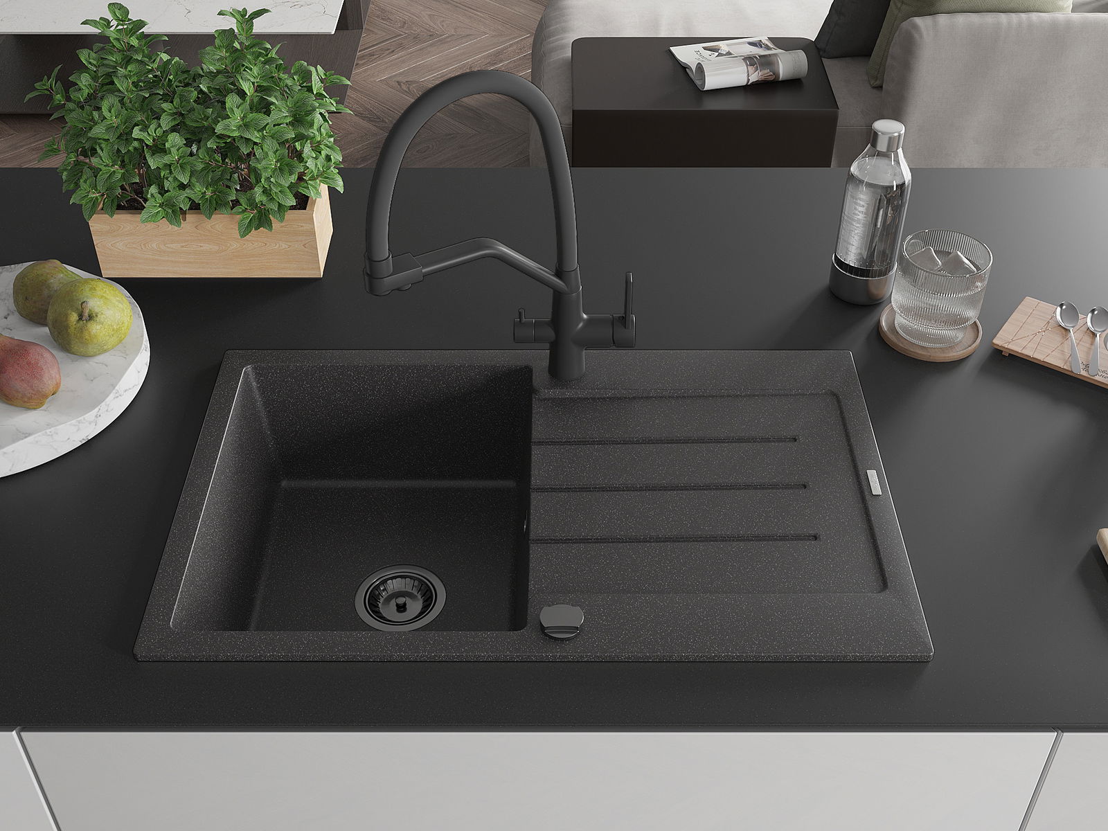 Suprafața chiuvetei este rezistentă la pete și decolorarea, datorită căreia este ușor de curățat și își păstrează culoarea mult timp. Estetică și practic completarea fiecărei bucătării.