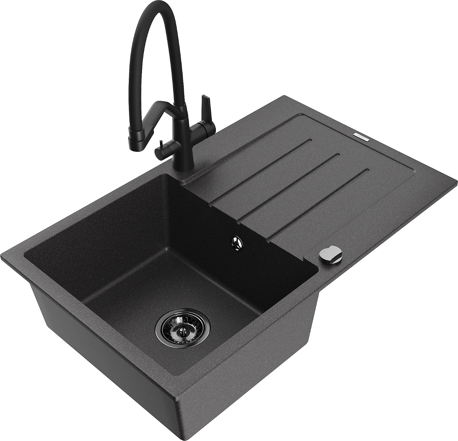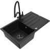 Mexen Bruno chiuvetă de bucătărie din granit cu 1 compartiment și picurător și baterie Duo, negru cu pete - 6513-76-671701-70-B