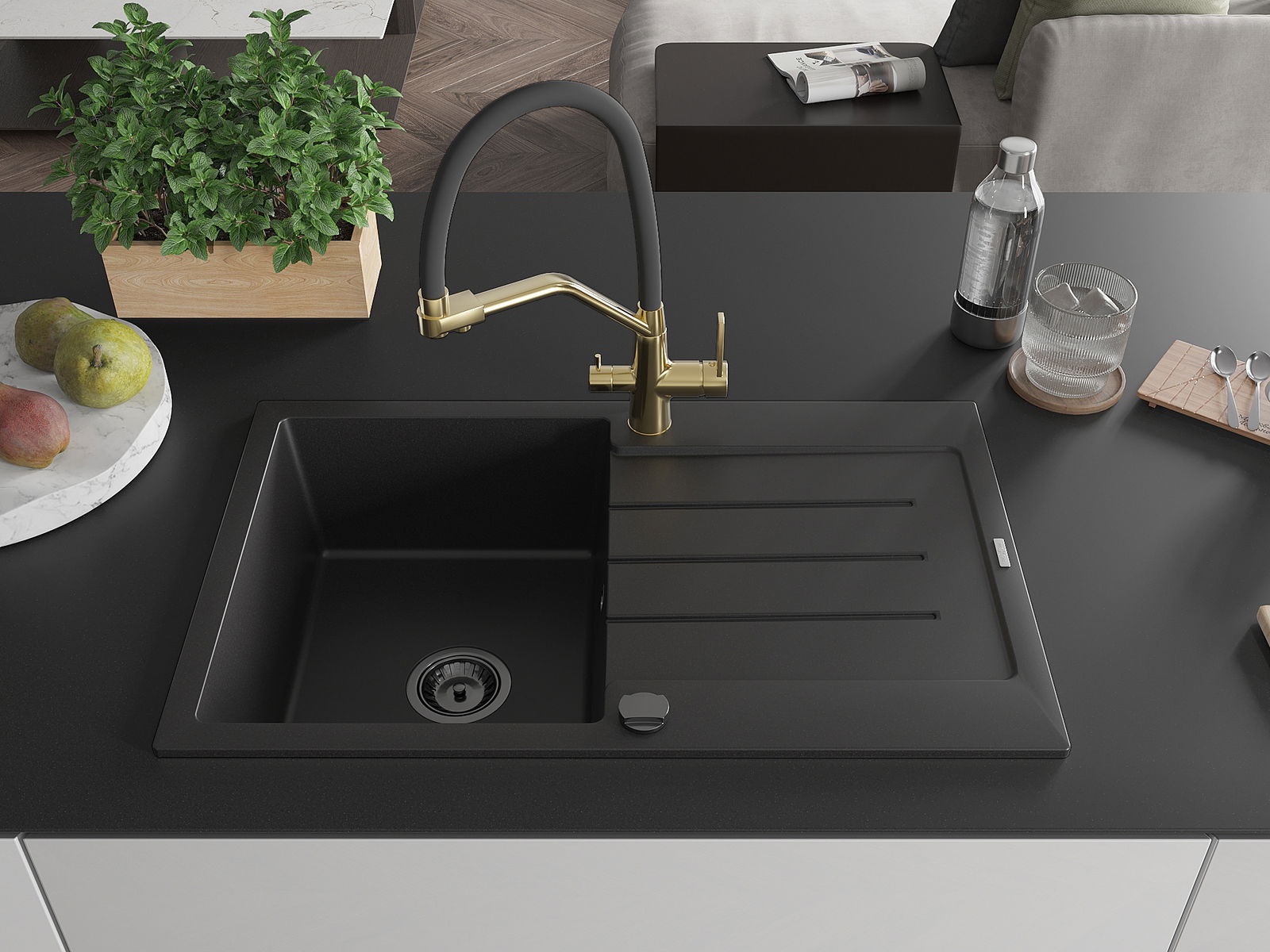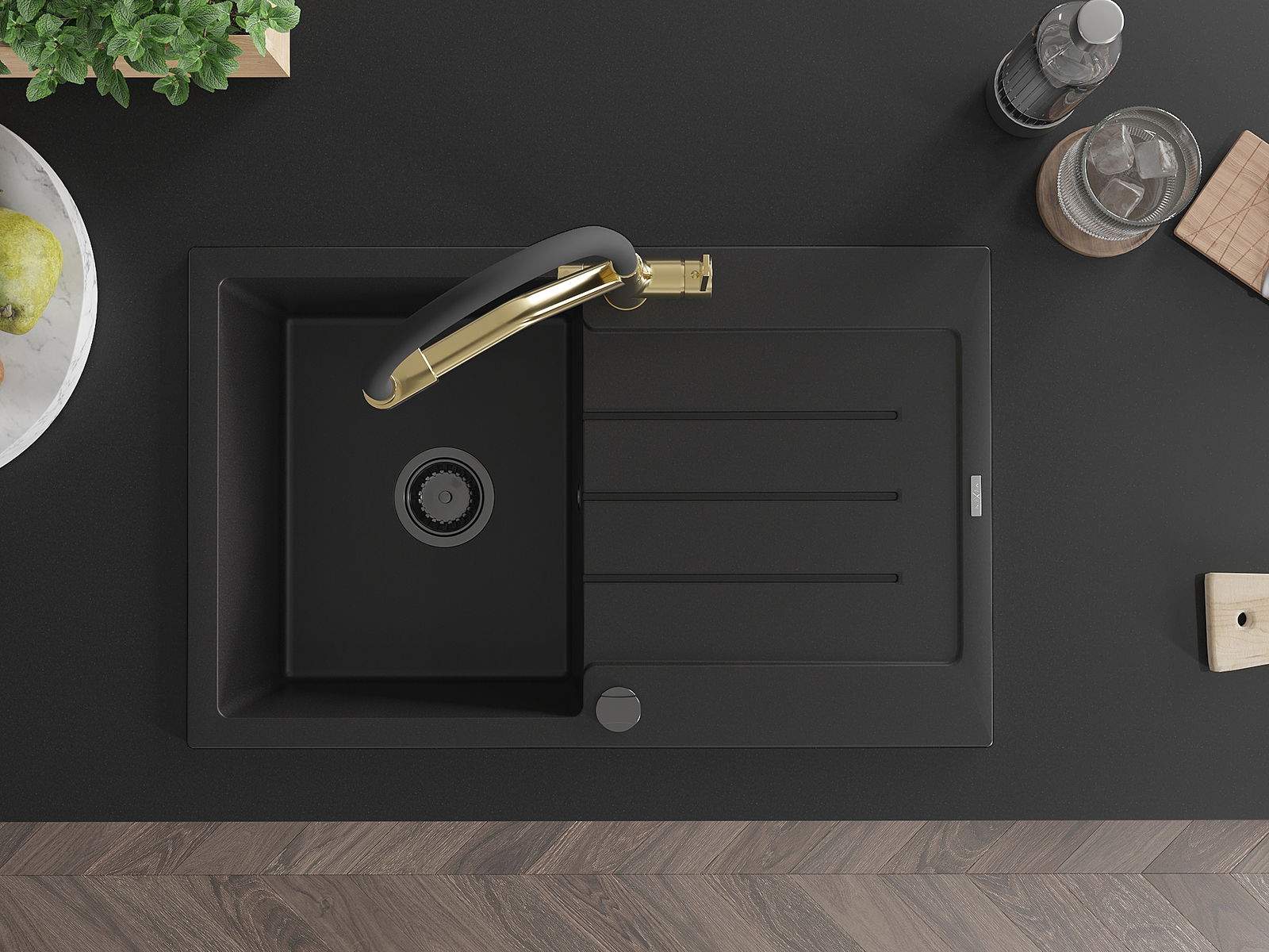 Suprafața chiuvetei este rezistentă la pete și decolorarea, datorită căreia este ușor de curățat și își păstrează culoarea mult timp. Estetică și practic completarea fiecărei bucătării.