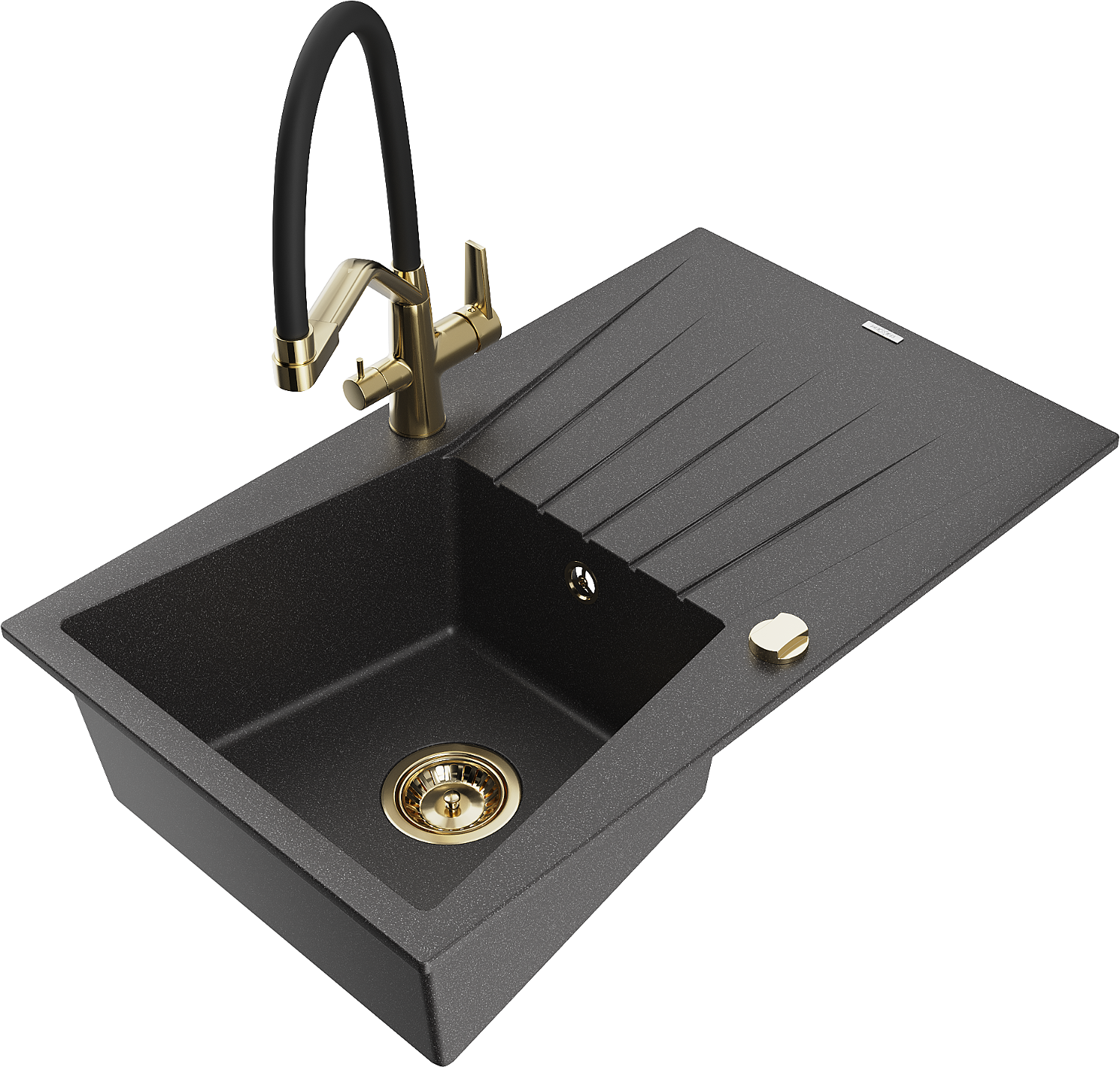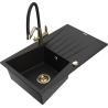 Mexen Cesar chiuvetă cu o cuvă din granit cu scurgător și baterie de bucătărie Duo, negru cu pete - 6514-76-671701-57-G