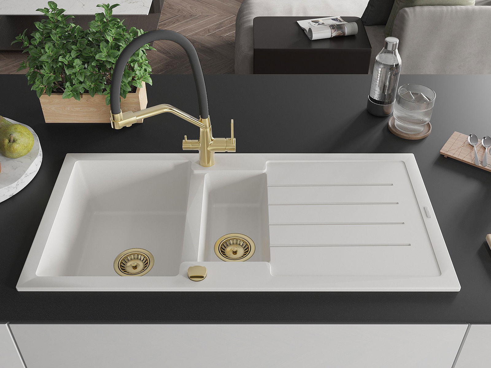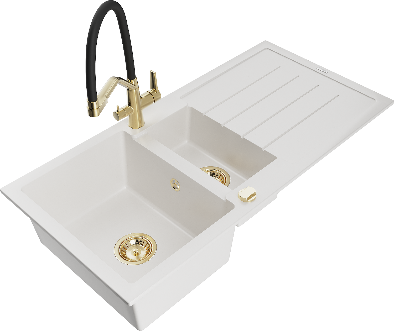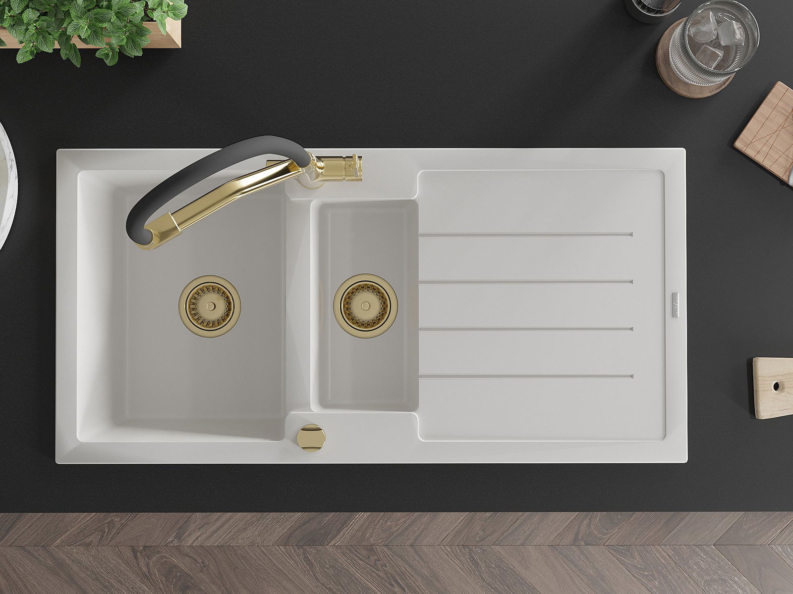 Mexen Andres chiuvetă din granit cu 1,5 camere și scurgător și baterie Duo, alb - 6515-20-671701-57-G