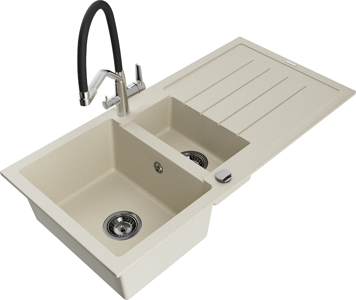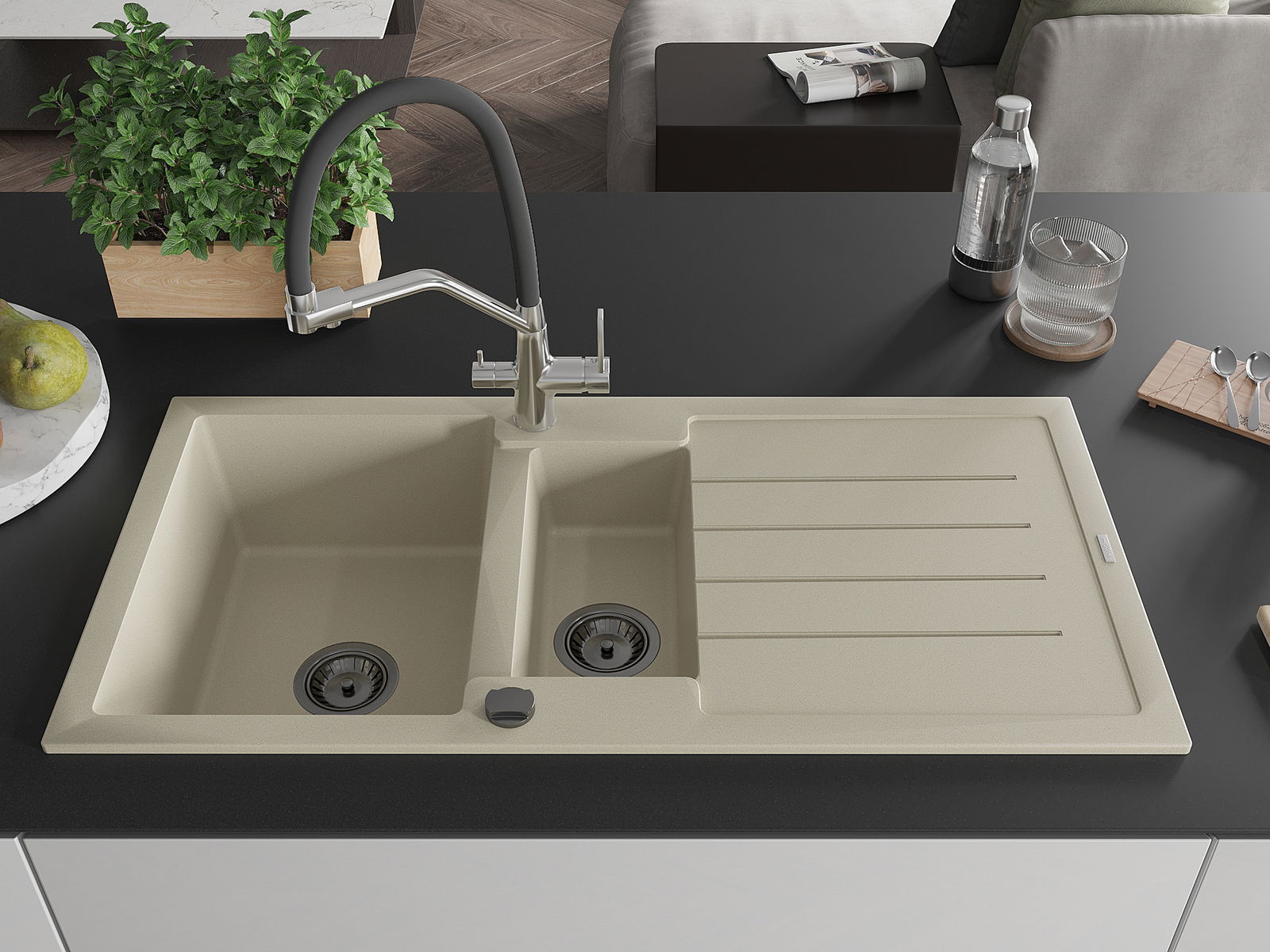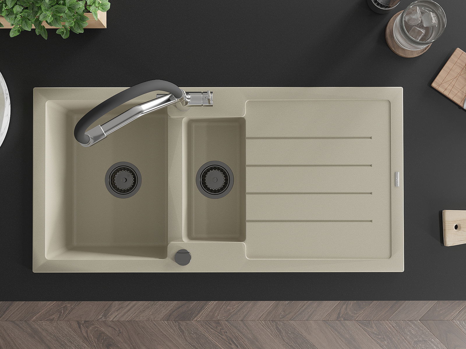 Mexen Andres chiuvetă granit 1,5-cupe cu scurgător și baterie de bucătărie Duo, bej - 6515-69-671701-07-B