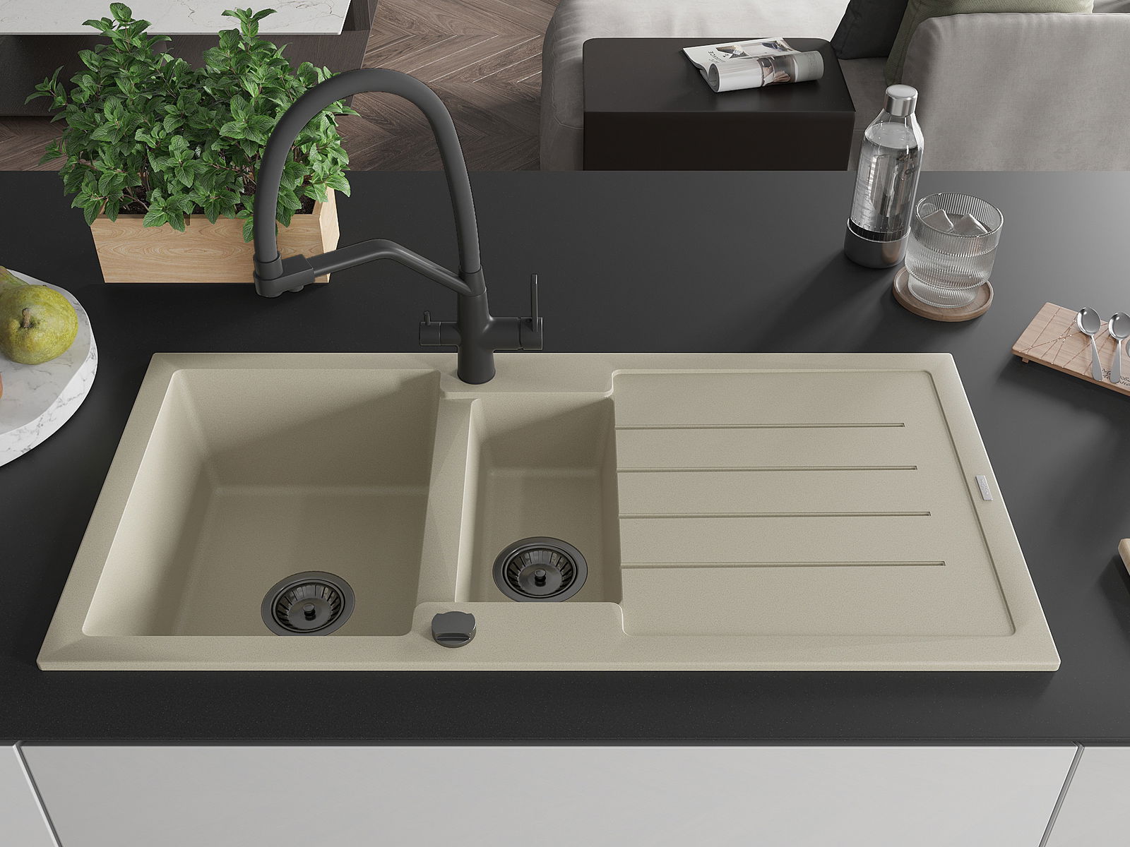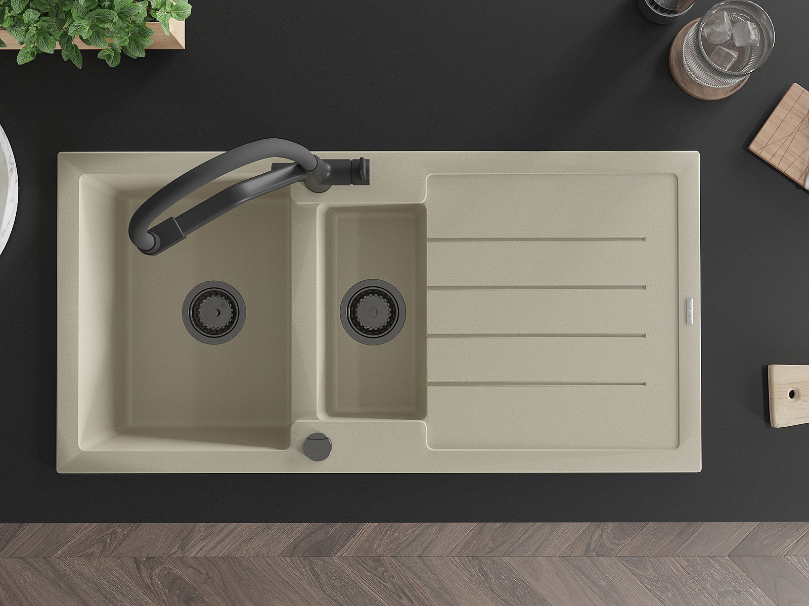 Suprafața chiuvetei este rezistentă la pete și decolorarea, datorită căreia este ușor de curățat și își păstrează culoarea mult timp. Estetică și practic completarea fiecărei bucătării.