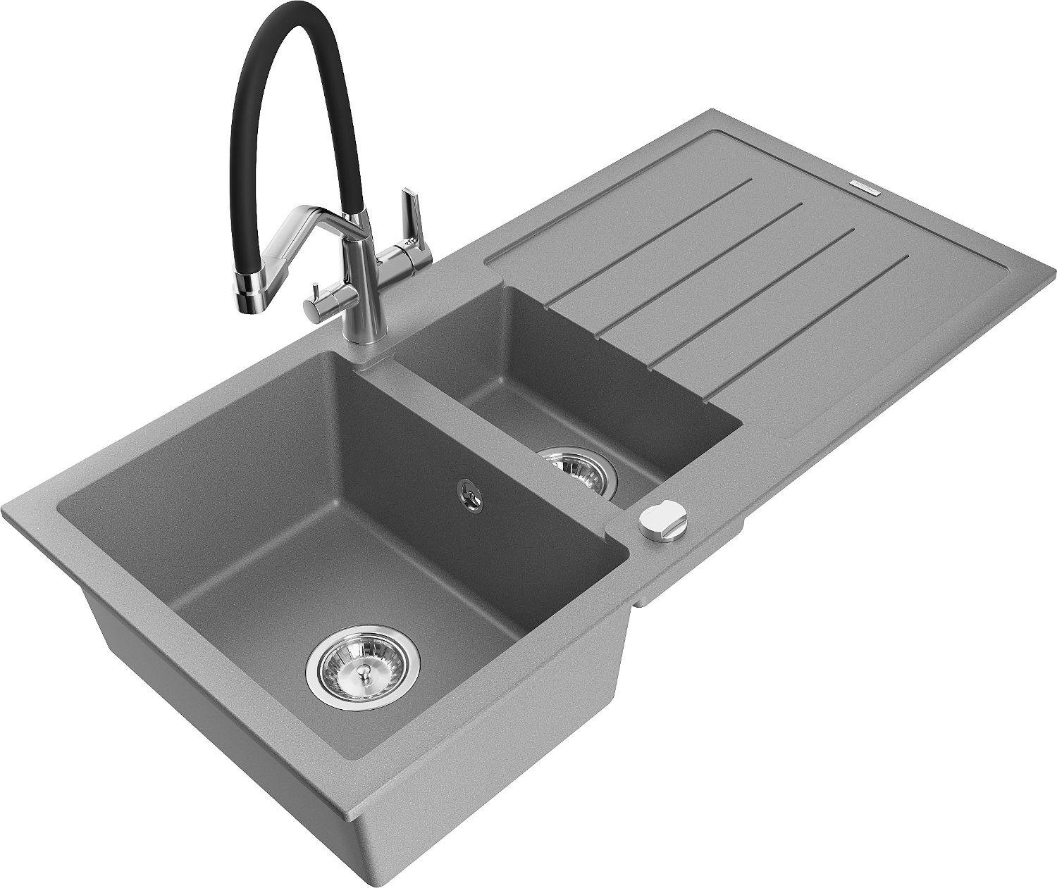 Mexen Andres chiuvetă de granit cu 1,5 compartimente cu scurgător și baterie de bucătărie Duo, gri - 6515-71-671701-07