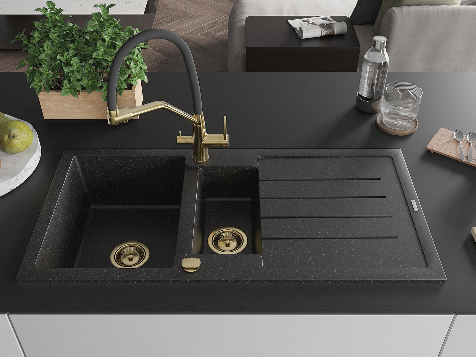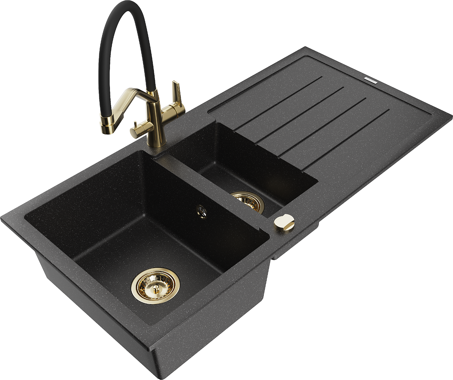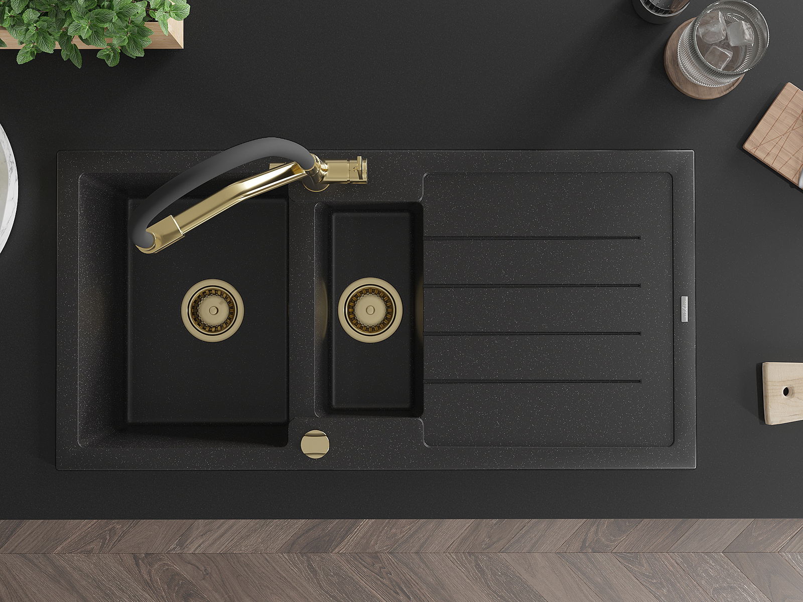 Mexen Andres chiuvetă din granit cu 1,5 compartimente, cu scurgător și baterie de bucătărie Duo, negru/argintiu