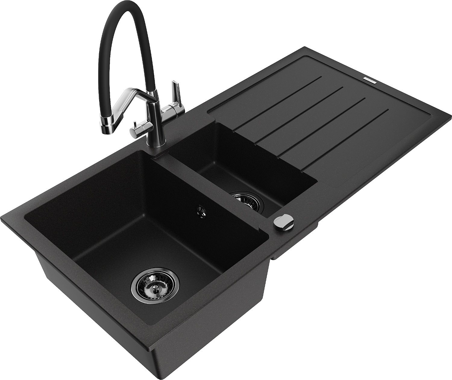 Mexen Andres chiuvetă granit 1,5 compartiment cu scurgător și baterie bucătărie Duo, negru - 6515-77-671701-07-B