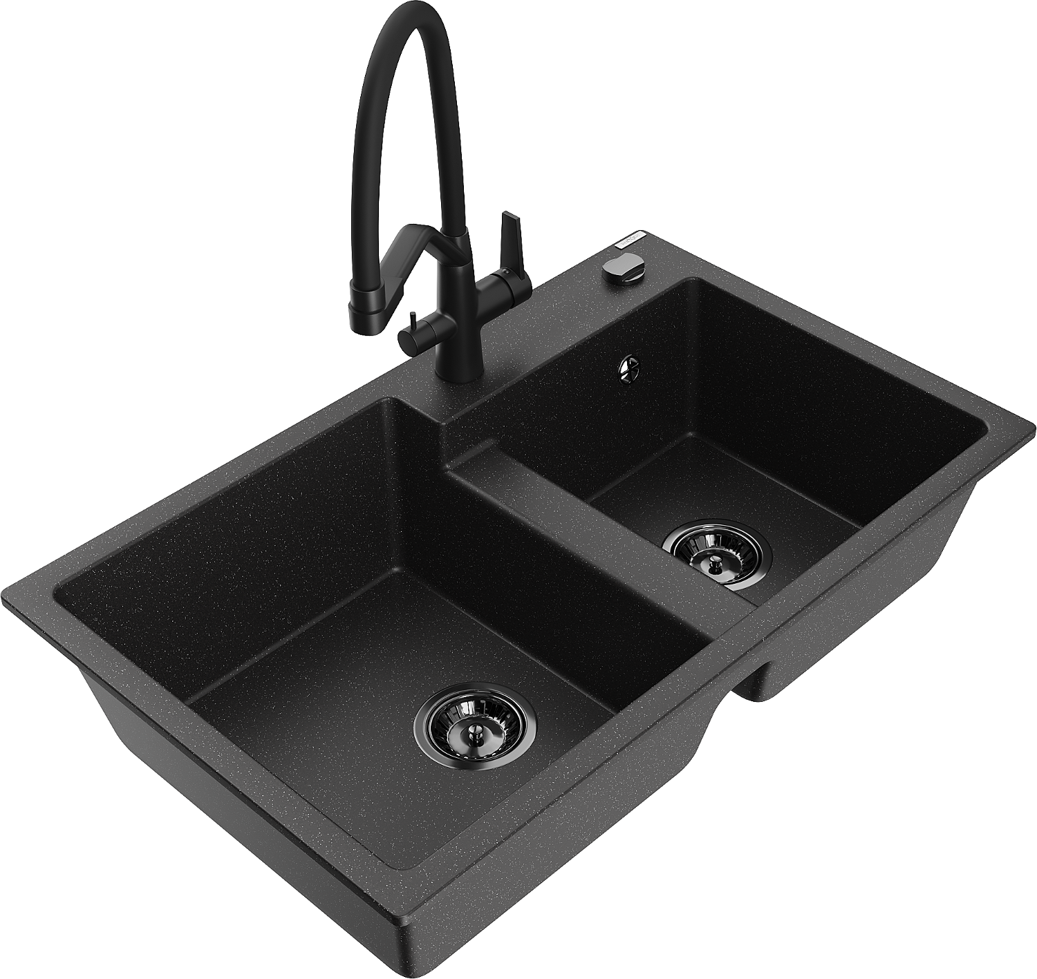 Mexen Tomas chiuvetă de bucătărie din granit cu 2 compartimente și baterie Duo, negru/metalic argintiu - 6516-73-671701-70-B