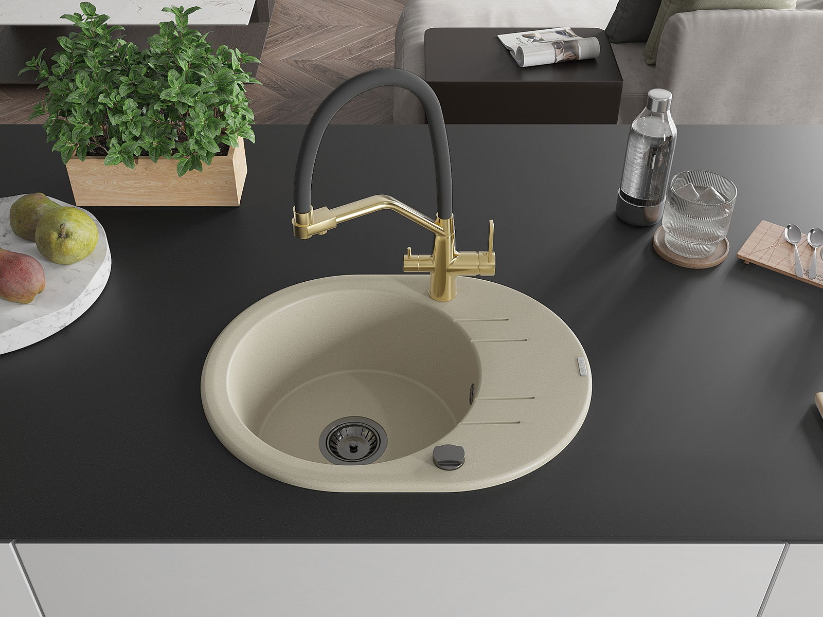Suprafața chiuvetei este rezistentă la pete și decolorarea, datorită căreia este ușor de curățat și își păstrează culoarea mult timp. Estetică și practic completarea fiecărei bucătării.