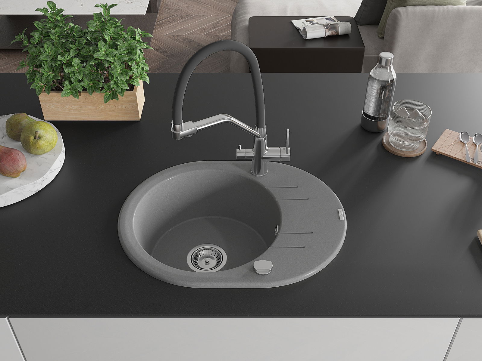 Chiuveta a fost realizată din granit de înaltă calitate. Reprezintă un complement elegant și, mai presus de toate, practic pentru orice bucătărie, indiferent de stilul acesteia. Calitatea înaltă și durabilitatea granitului asigură o utilizare de lungă durată.