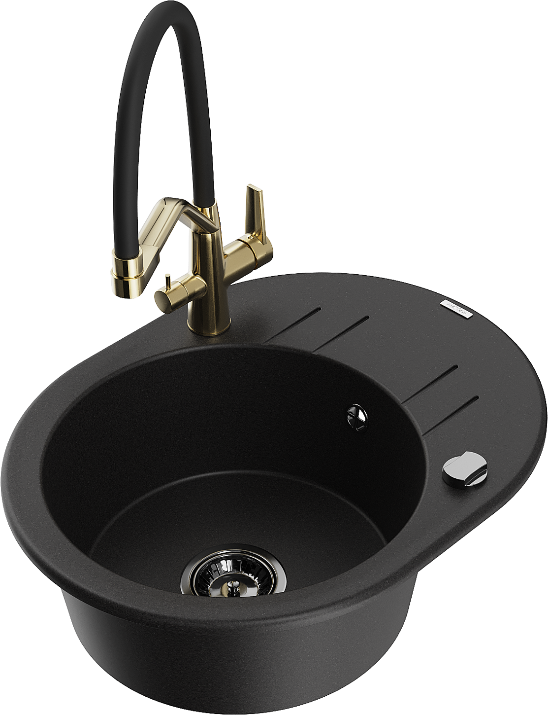 Chiuveta are 2 găuri legate cu un diametru de 35 mm, pentru auto -burst. Pot fi folosite, printre altele Pentru montarea unui distribuitor de lichid care va elimina prezența sticlelor de plastic în bucătărie și îi va oferi un finisaj elegant.