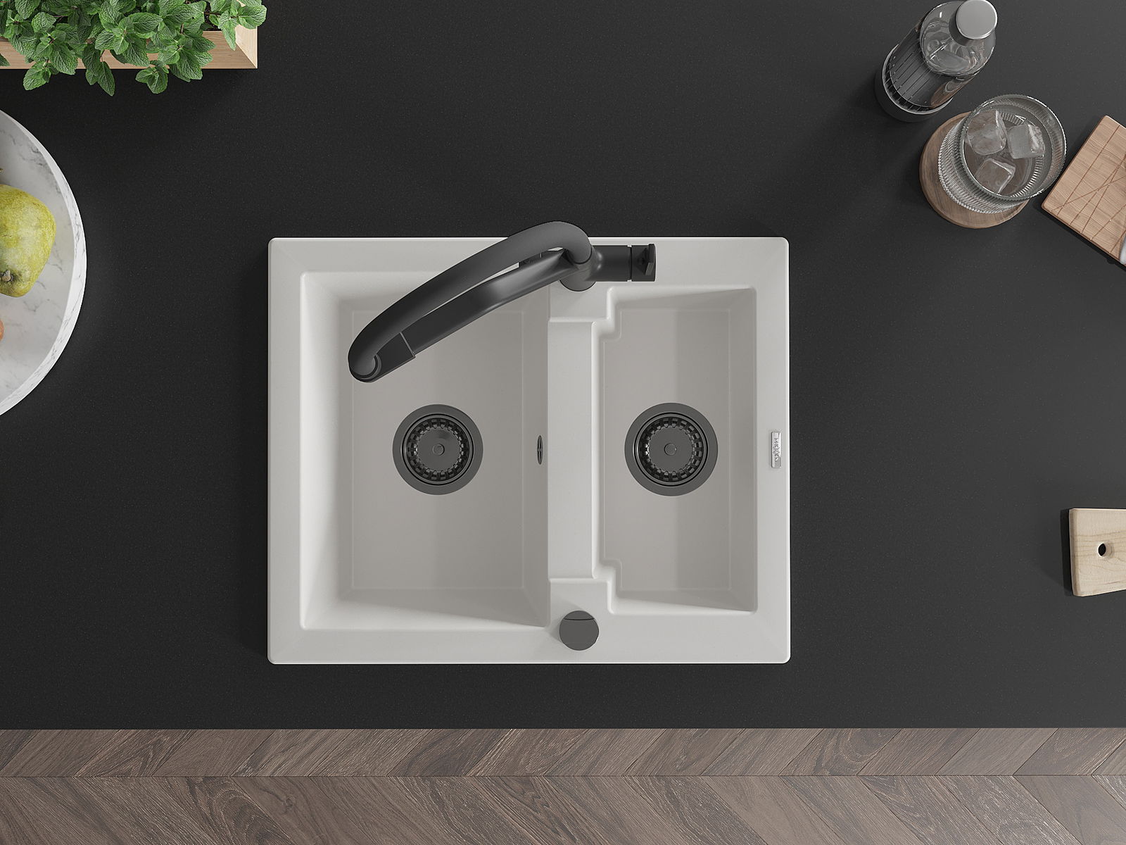 Mexen Carlos chiuvetă granit de 1,5 compartimente cu baterie de bucătărie Duo, alb - 6518-20-671701-70-B