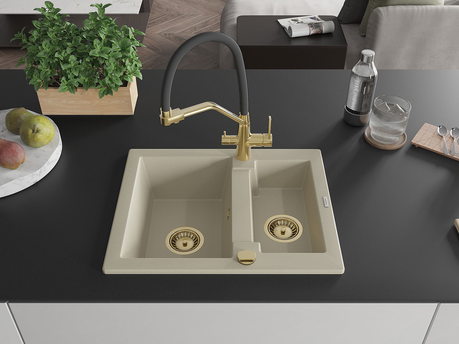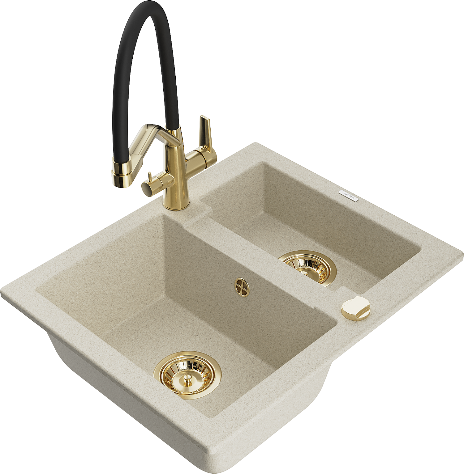 Mexen Carlos chiuvetă de granit 1,5 compartimente cu baterie de bucătărie Duo, bej - 6518-69-671701-57-G