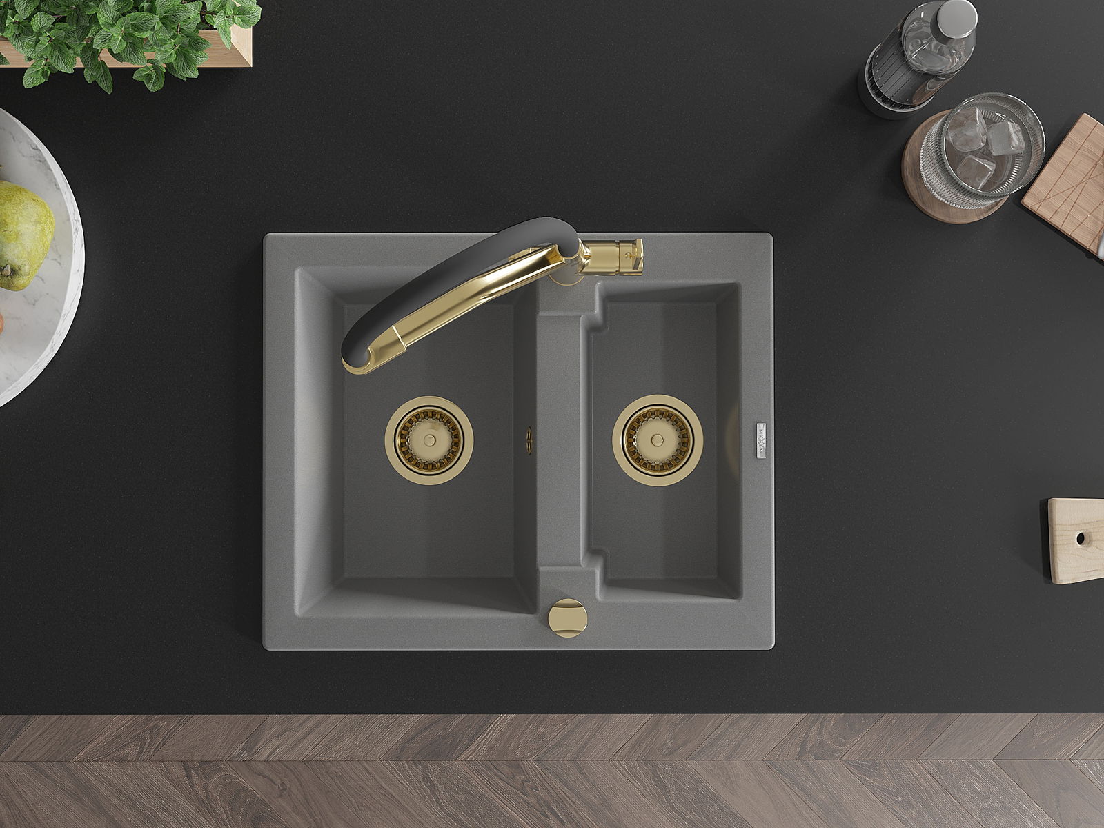 Mexen Carlos chiuvetă de granit 1,5 boluri cu baterie de bucătărie Duo, gri - 6518-71-671701-57-G