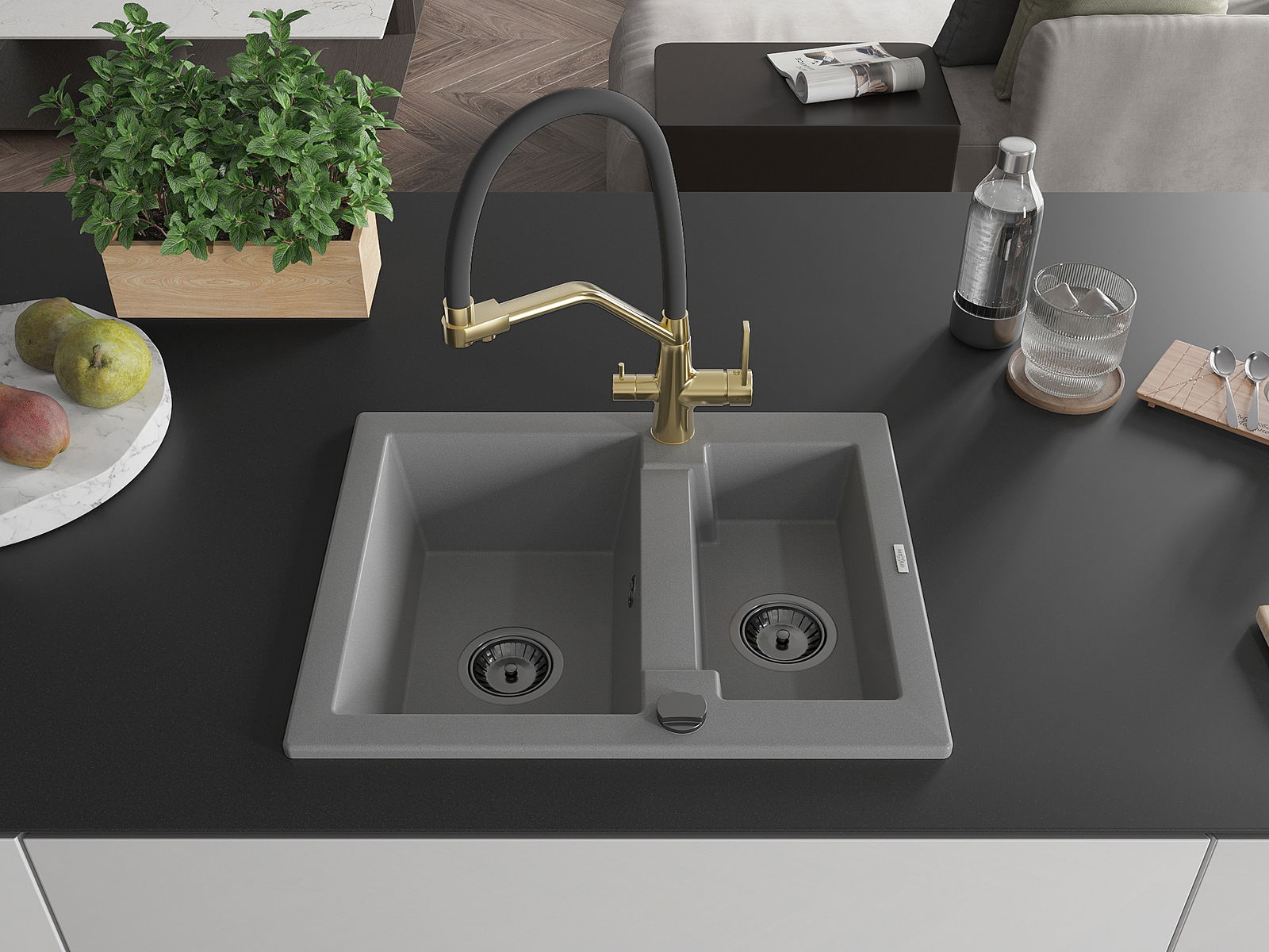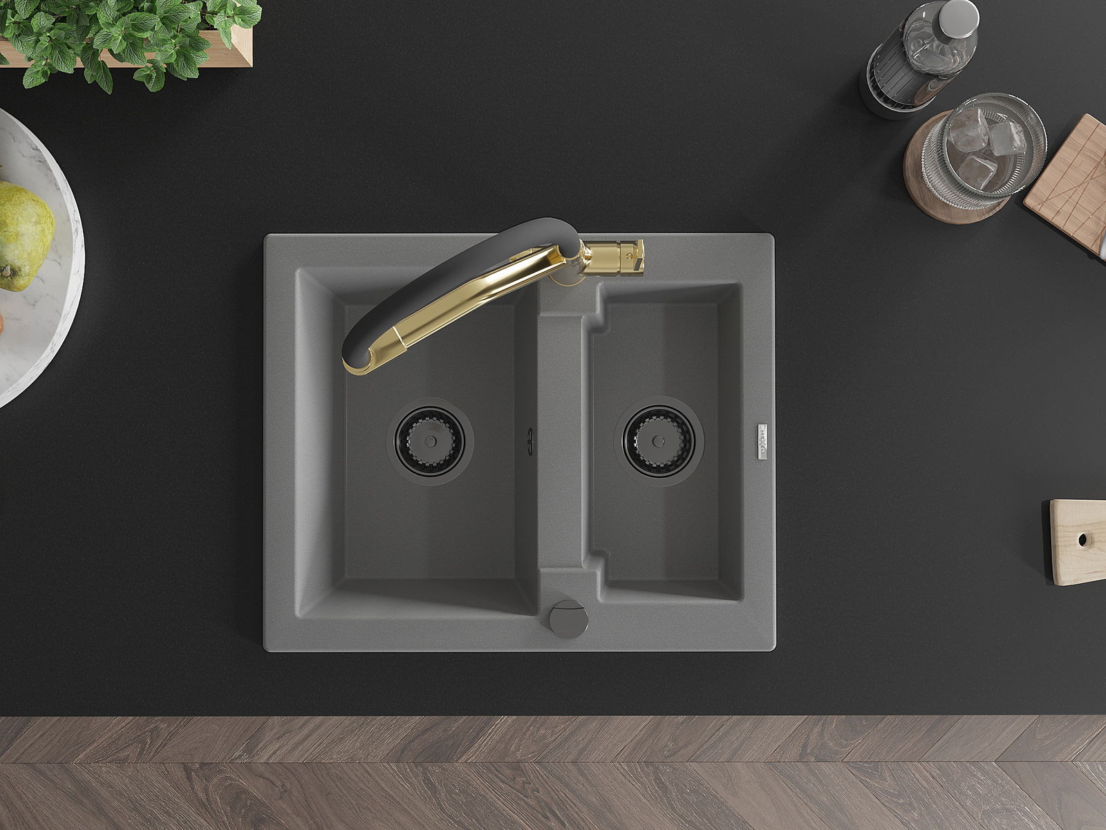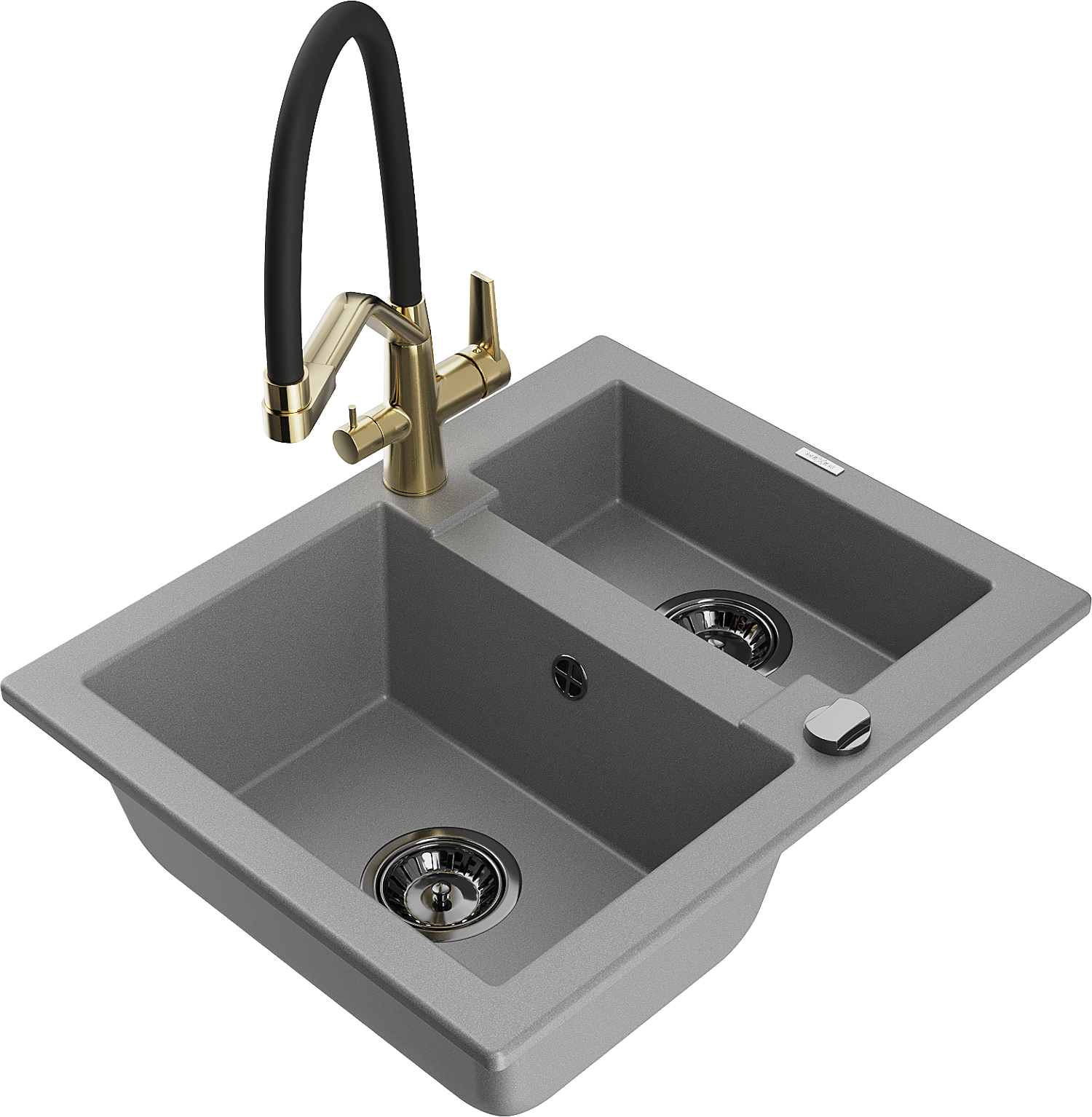 Mexen Carlos chiuvetă din granit cu 1,5 cuve și baterie de bucătărie Duo, gri - 6518-71-671701-57-B