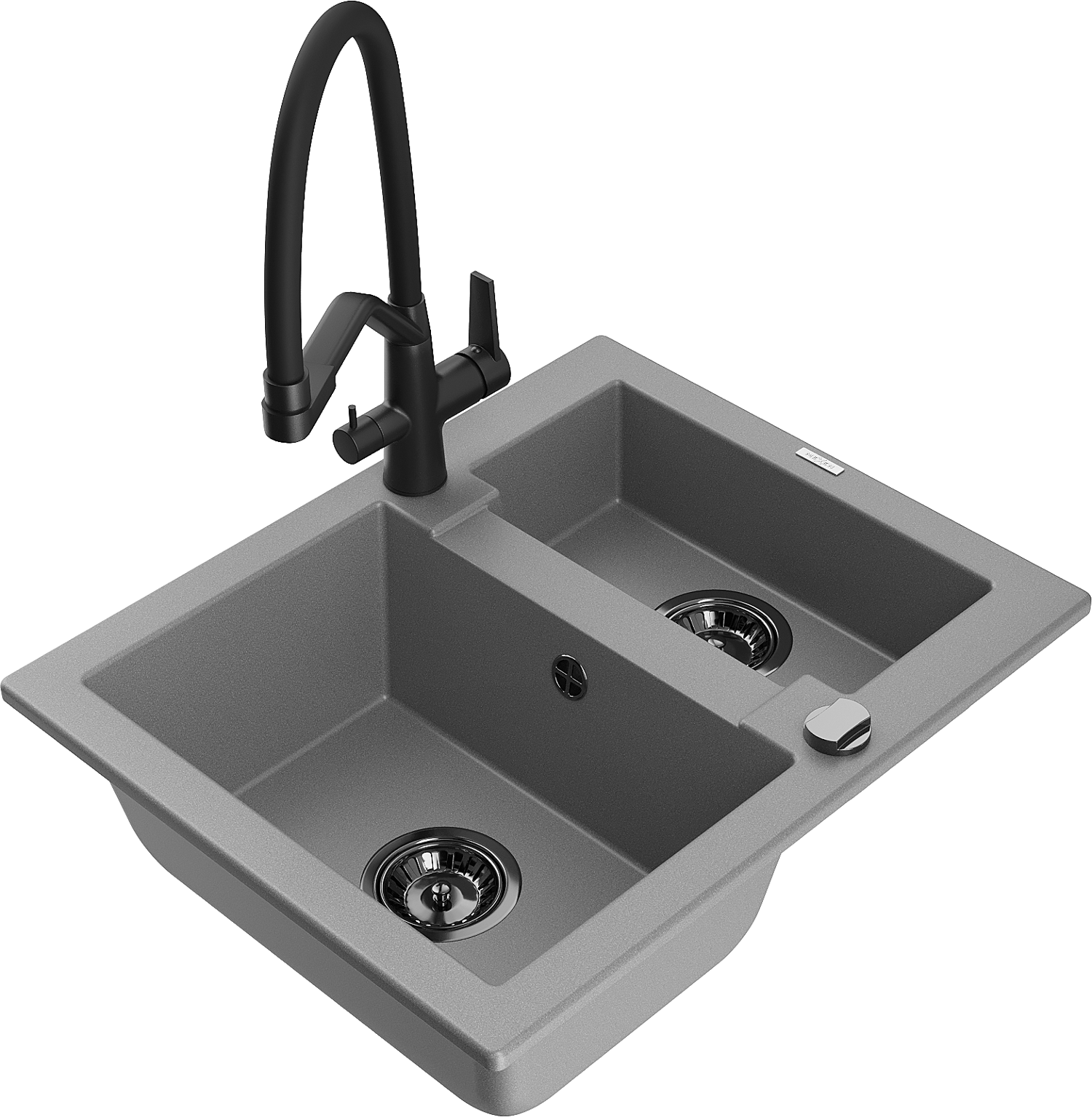 Mexen Carlos chiuvetă de granit cu 1,5 cuve cu baterie de bucătărie Duo, gri - 6518-71-671701-70-B