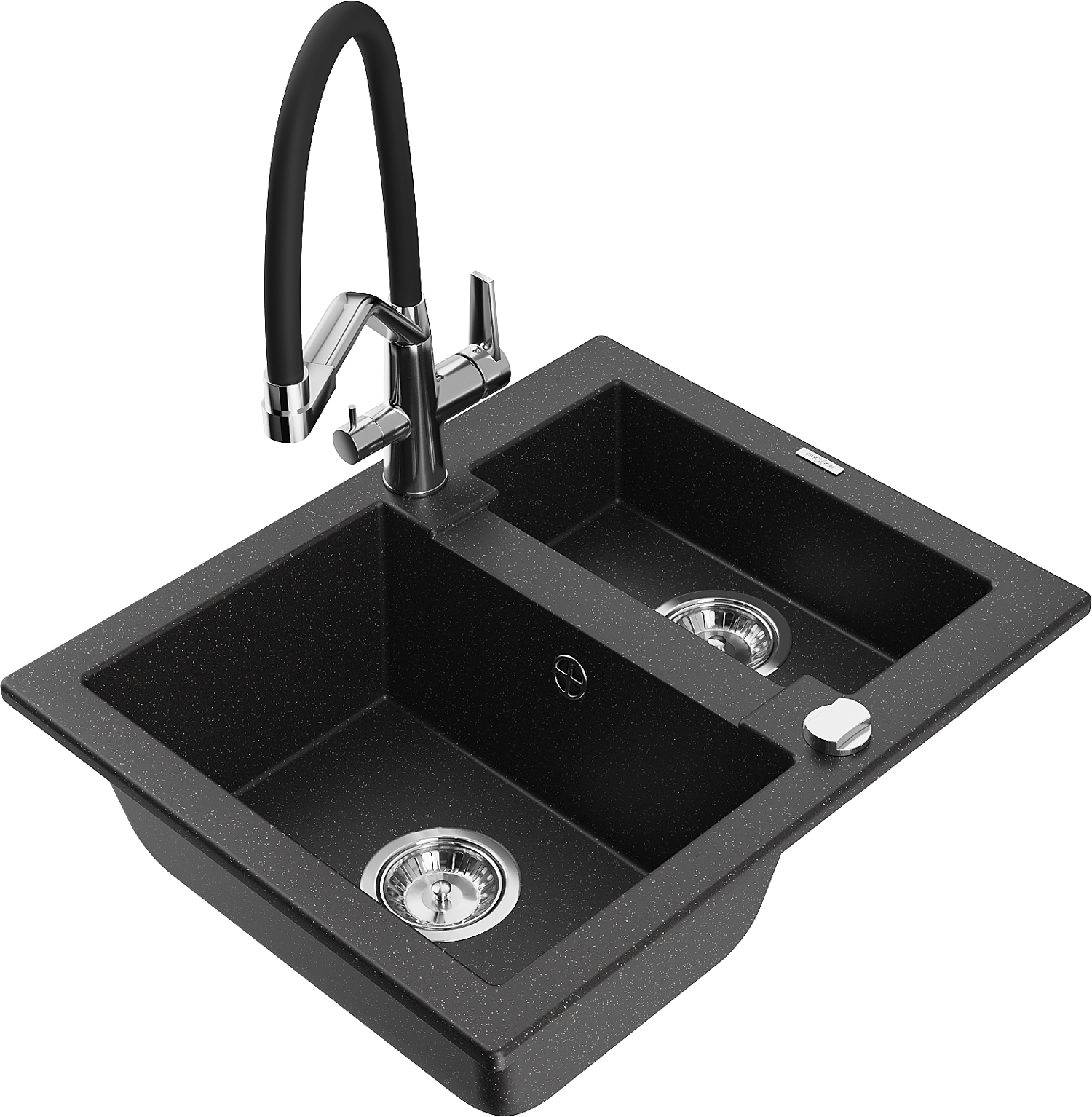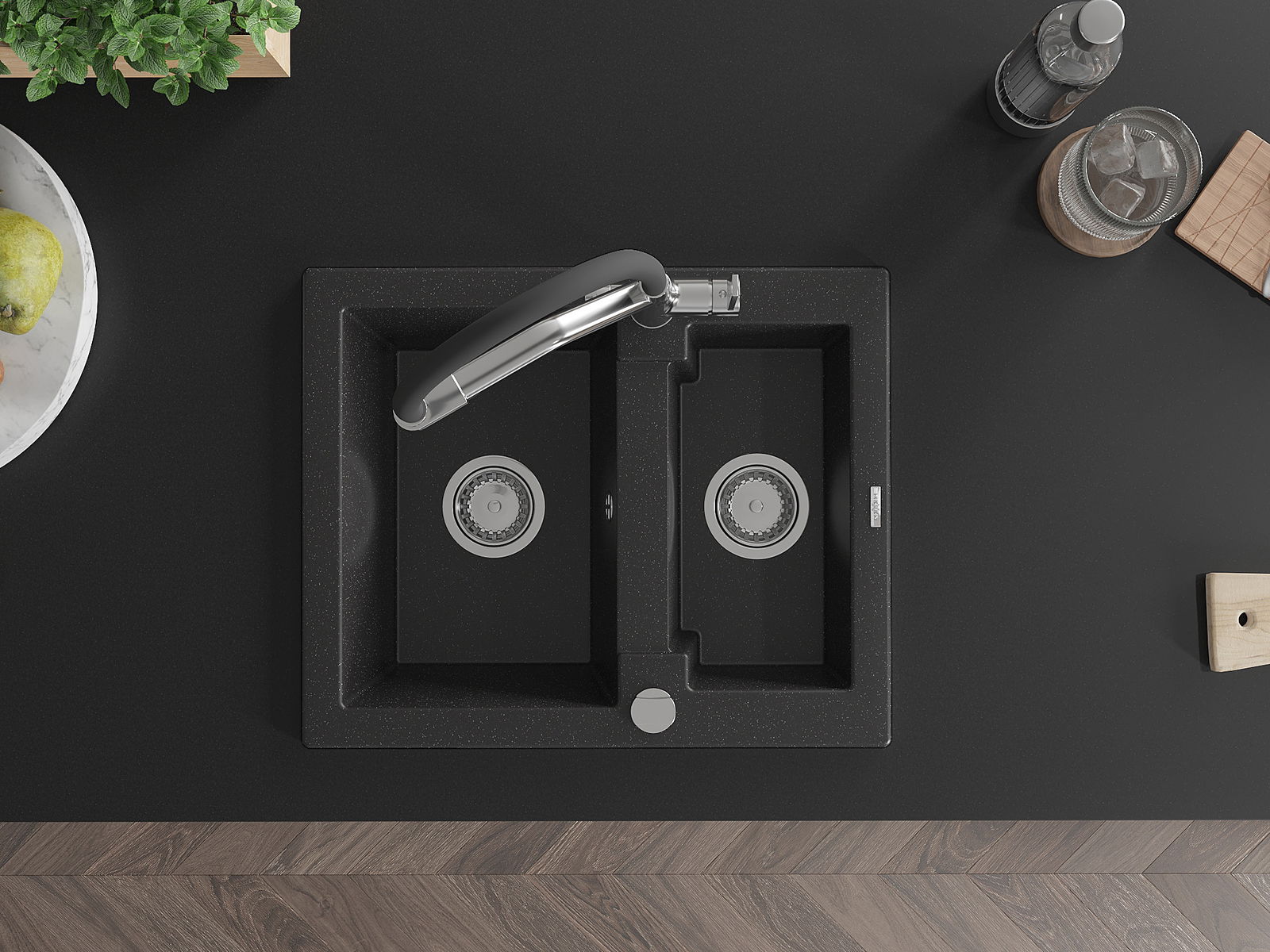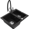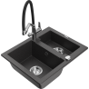 Mexen Carlos chiuvetă de granit 1,5 compartimente cu baterie de bucătărie Duo, negru/metal argintiu - 6518-73-671701-07