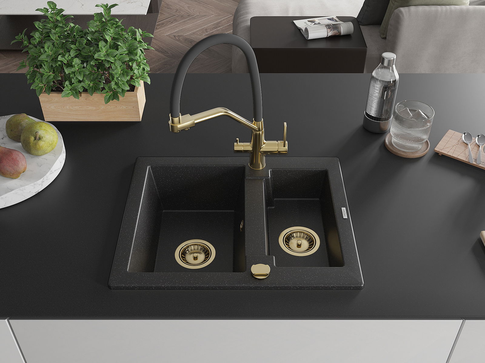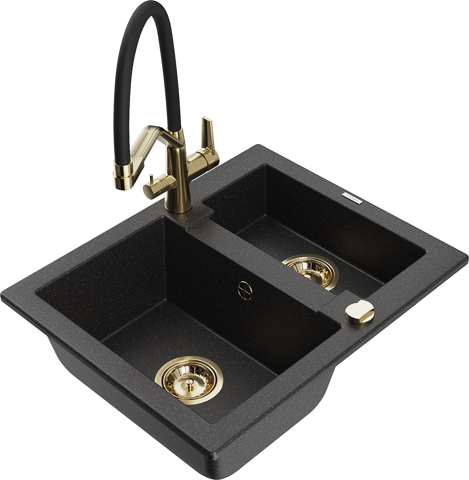 Mexen Carlos chiuvetă de bucătărie granit 1,5 compartiment cu baterie Duo, negru/argintiu metalizat - 6518-73-671701-57-G