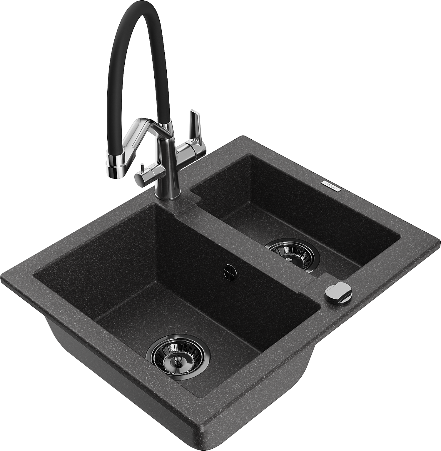 Mexen Carlos chiuvetă granit 1,5-camere cu baterie de bucătărie Duo, negru vărgat - 6518-76-671701-07-B