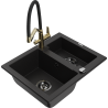 Mexen Carlos chiuvetă de granit cu 1,5 compartimente și baterie de bucătărie Duo, negru cu pete - 6518-76-671701-57-B