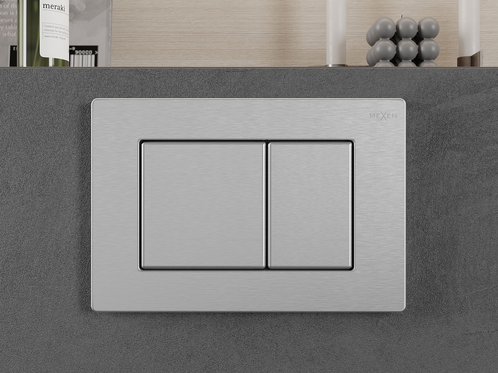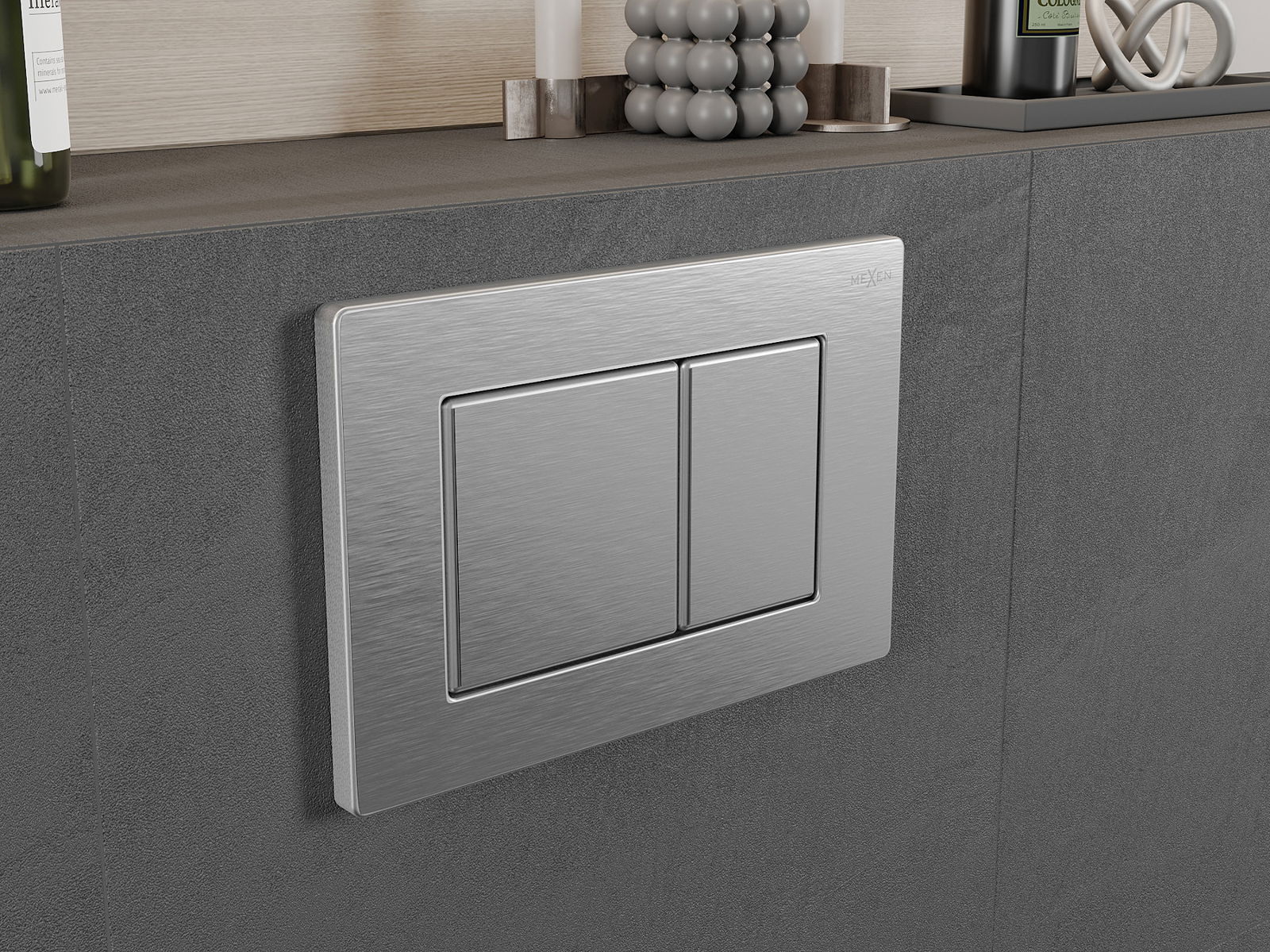 Butonul se potrivește cadrului din seria Mexen Fenix Slim, în care este posibil să se instaleze din față. O soluție populară și practică, în special în băi, unde accesul la buton din față este mai confortabil.
