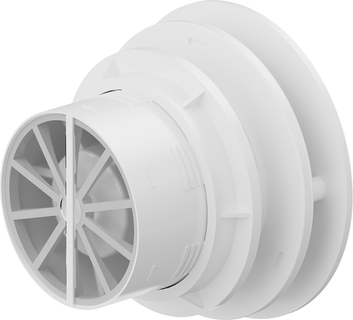 Dispozitivul este echipat cu un mecanism care împiedică întoarcerea aerului înapoi în încăpere după oprirea ventilatorului. Este deosebit de util în băi, unde prevenirea fluxului nedorit de aer poate îmbunătăți confortul și igiena.
