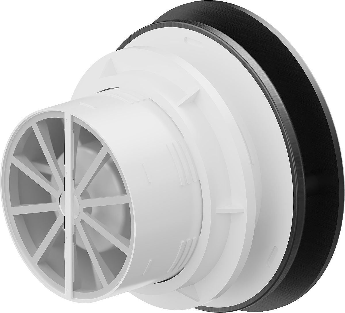 Dispozitivul este echipat cu un mecanism care împiedică întoarcerea aerului înapoi în încăpere după oprirea ventilatorului. Este deosebit de util în băi, unde prevenirea fluxului nedorit de aer poate îmbunătăți confortul și igiena.