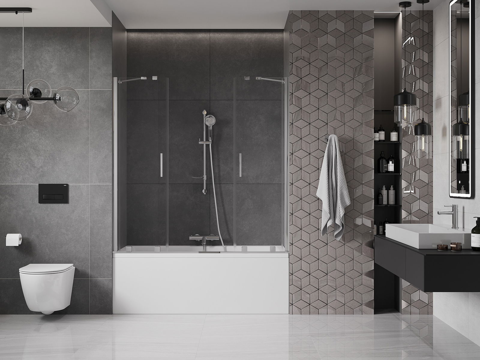 Datorită utilizării unui sistem universal de montare, paravanul poate fi montat pe partea dreaptă sau pe partea stângă, în funcție de necesități. În acest fel, poți proiecta cu ușurință un duș adaptat la spațiul băii.