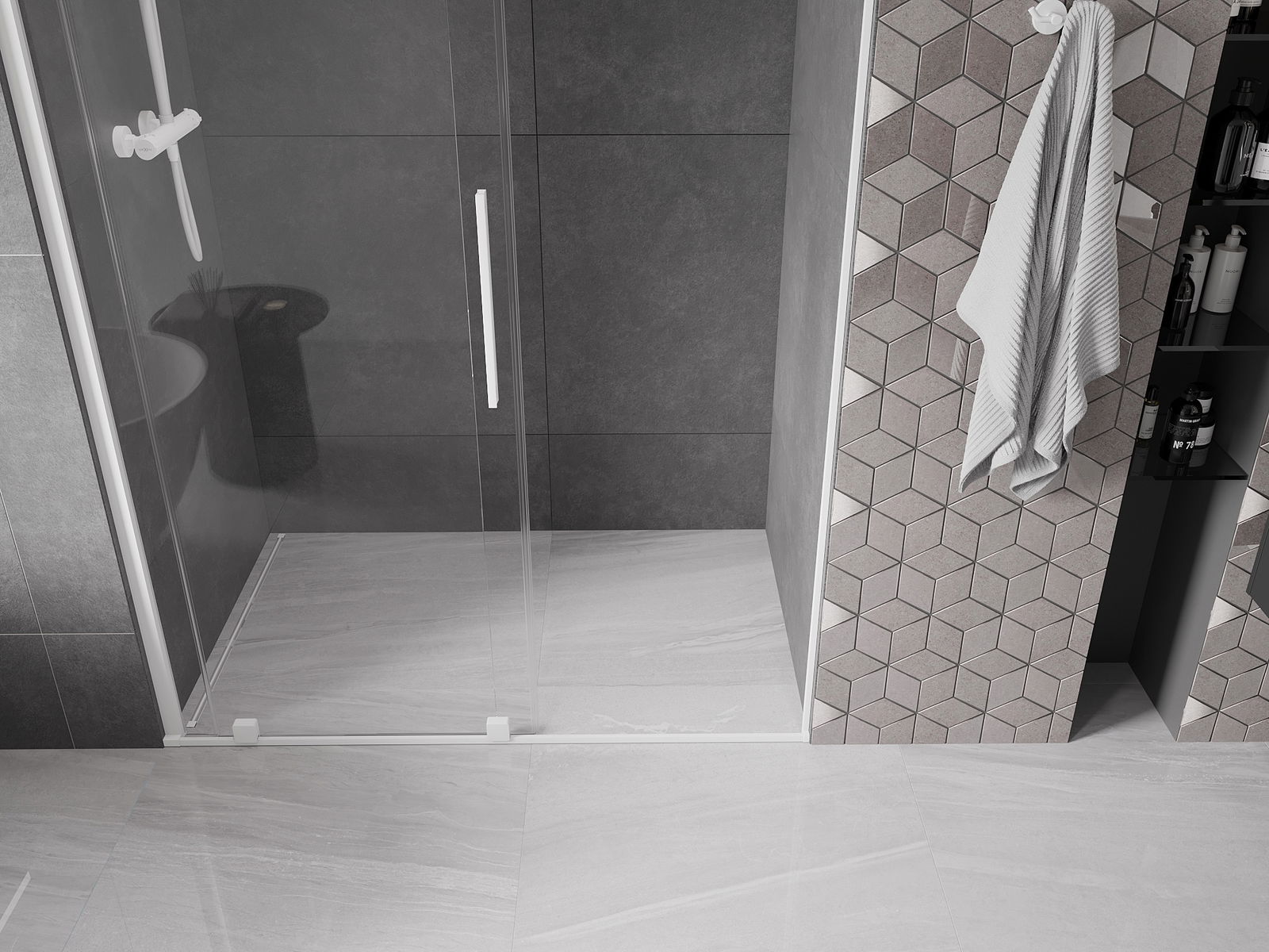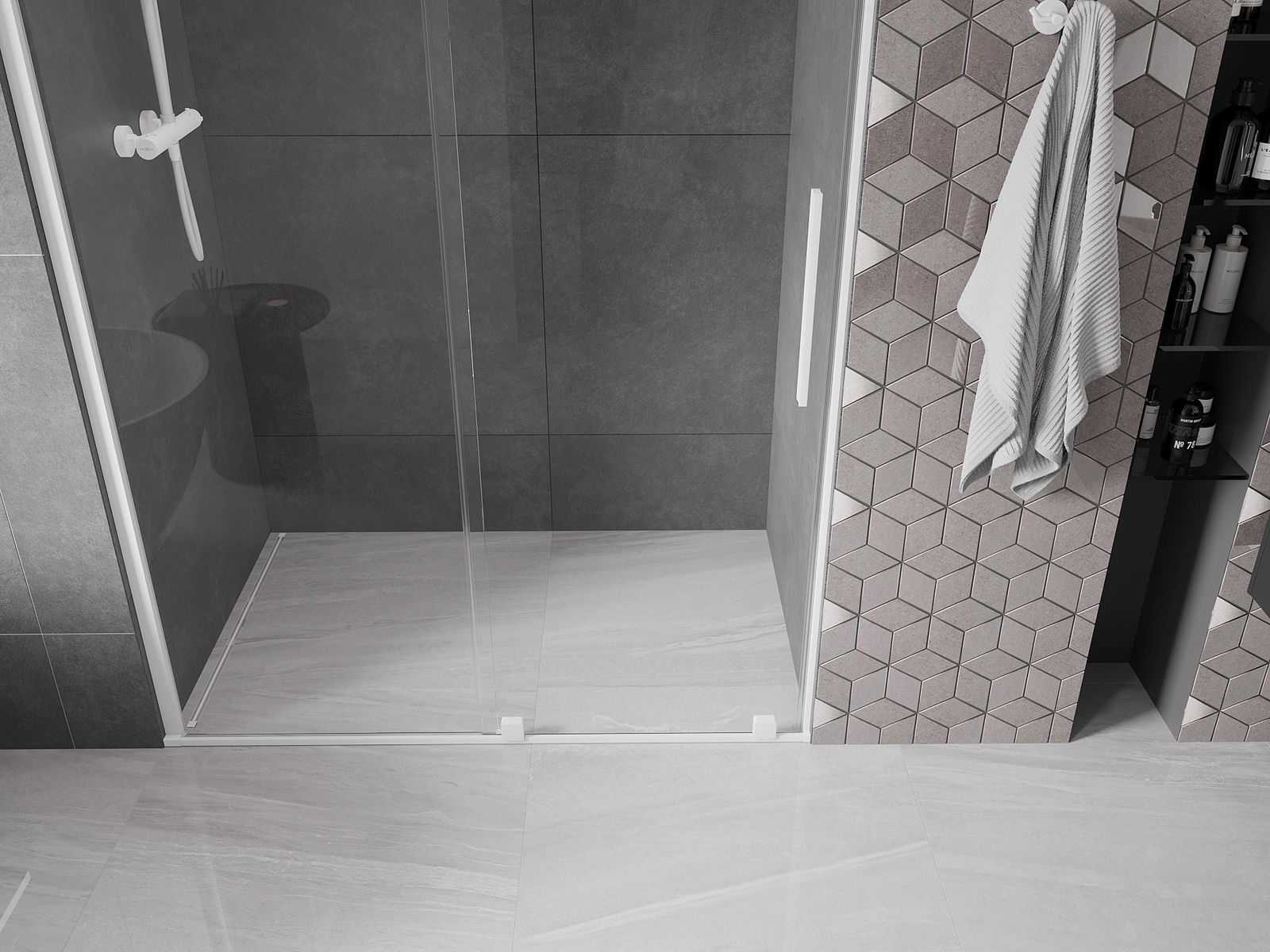 Mânerul practic și confortabil este fabricat din oțel inoxidabil. Forma la modă, combinată cu un finisaj care se potrivește cu culoarea profilelor, conferă întregului un aspect modern și elegant, îmbunătățind estetica oricărei băi.